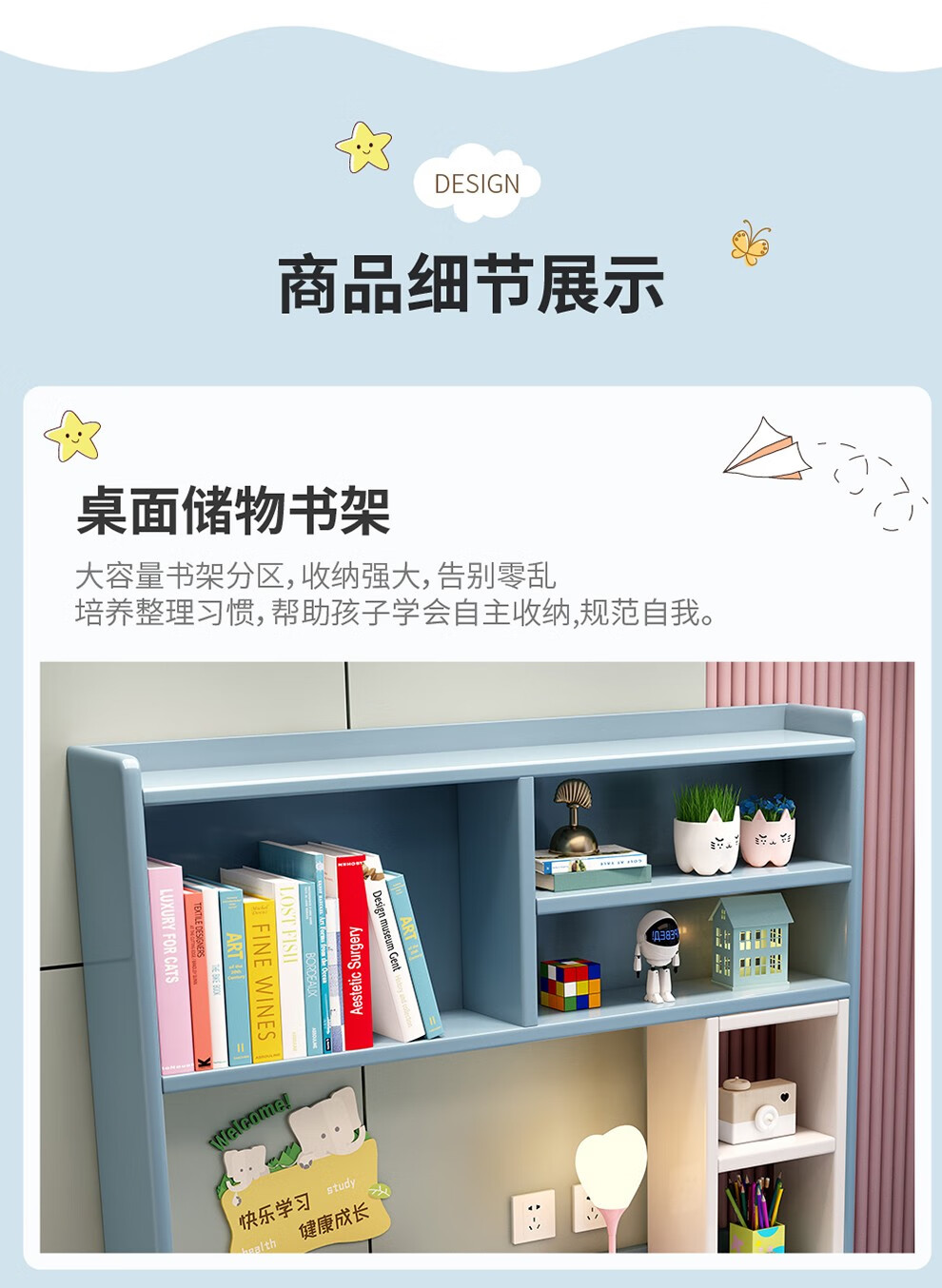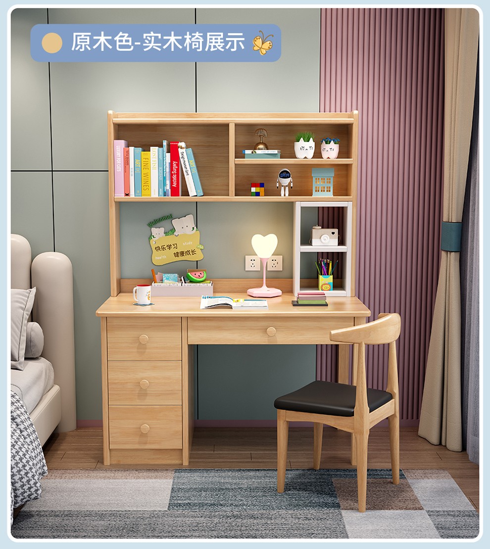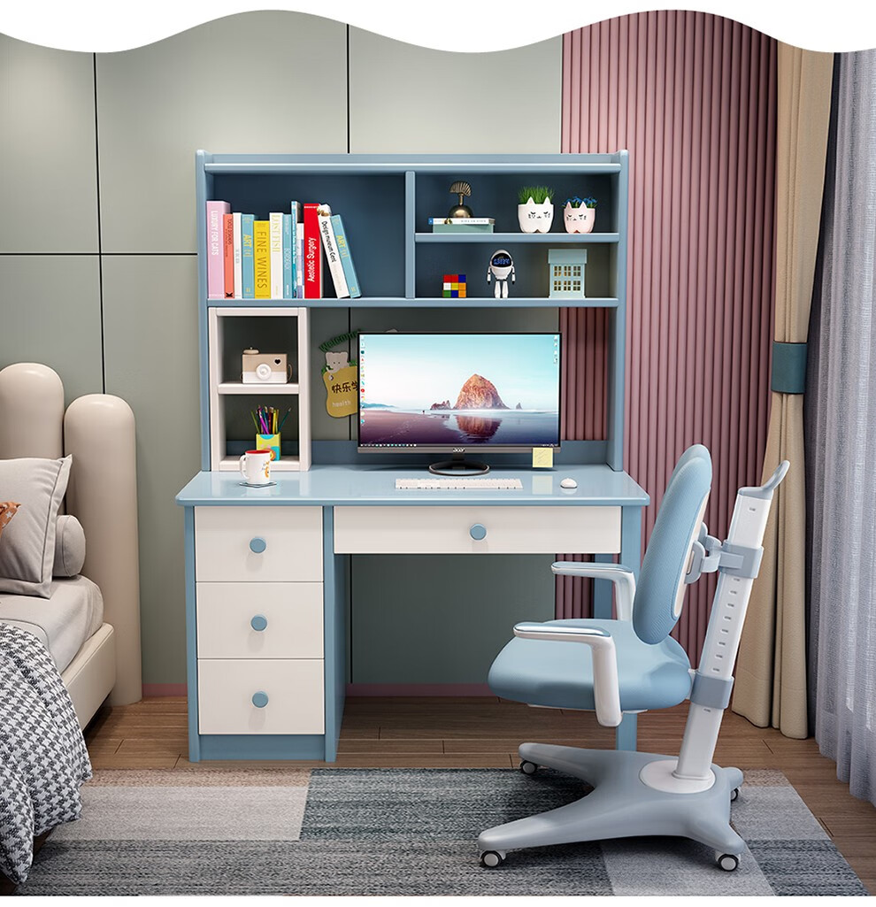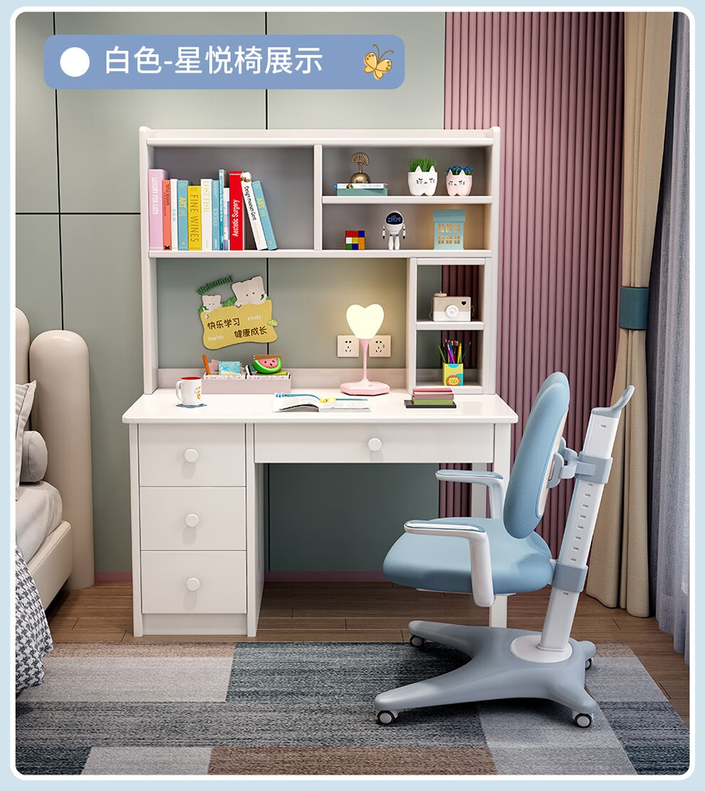 精灵空间 京东居家优选 儿童学习桌椅套装 学习桌 儿童书桌 可升降带书架 马卡龙粉 80cm桌椅套装...