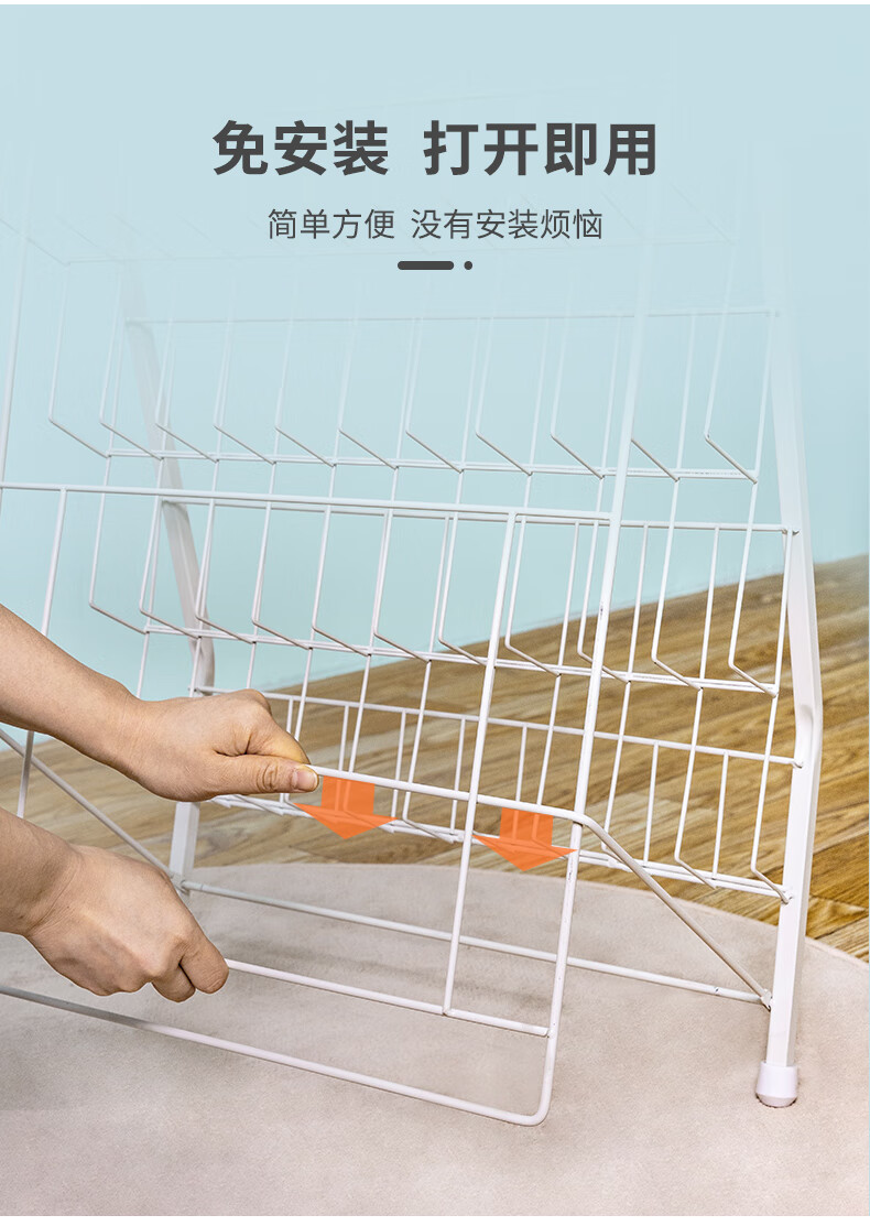 晾衣架落地挂衣架不锈钢翼型衣服架卧室晒衣架凉台简易折叠晒被子神器手动晒衣杆多功能宿舍婴儿毛巾杆 标准款【暖白色】【1.4米】...