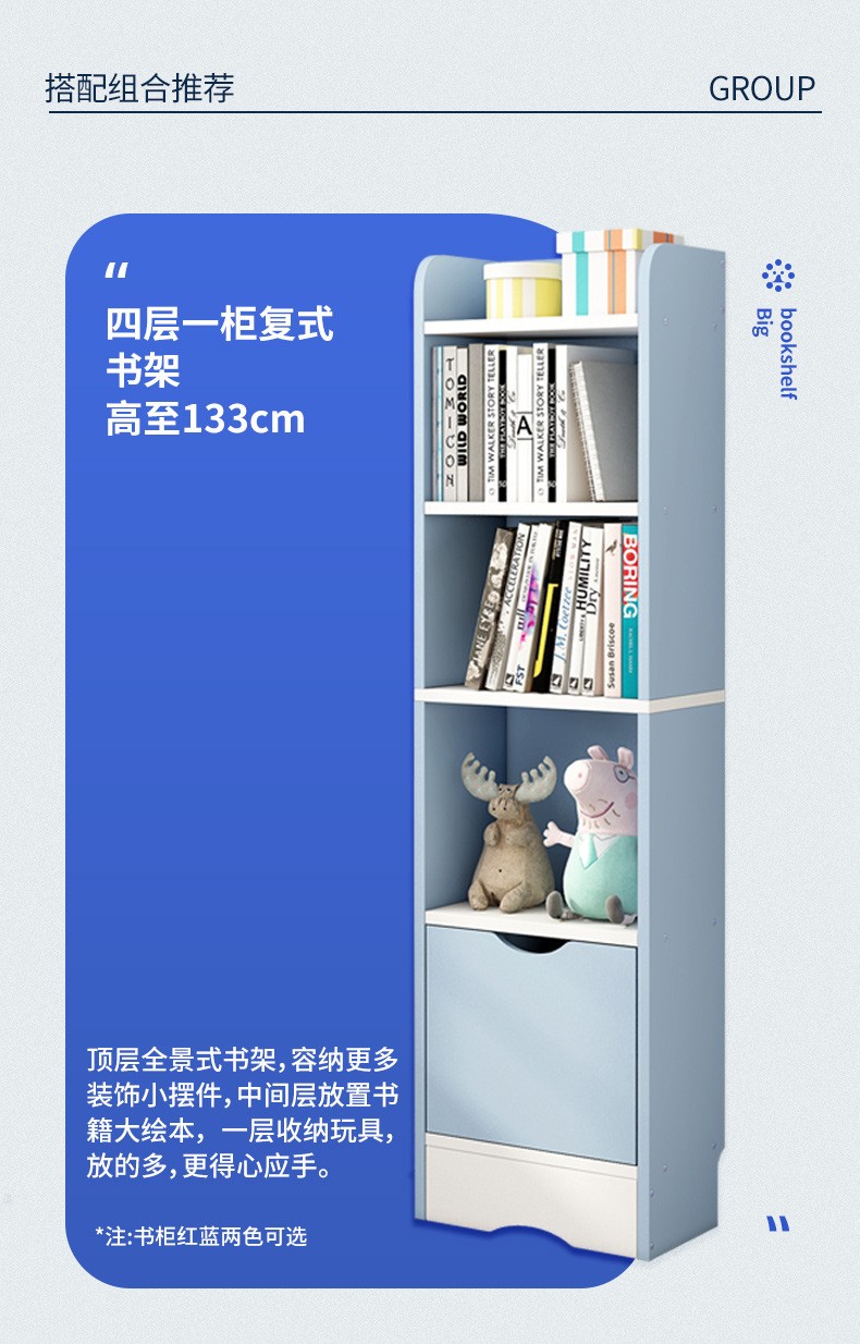 木以成居 书架 落地储物客厅卧室阳台简易简约实木色收纳架五层四格 80X24X129cm 原野橡木 LY-4188F...