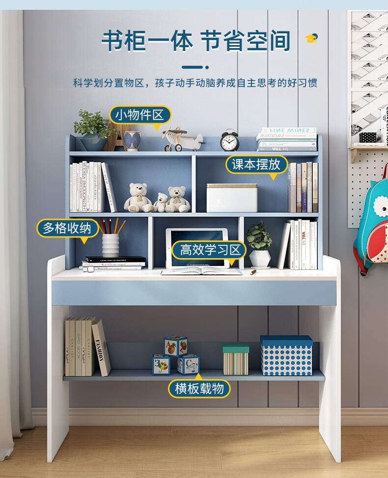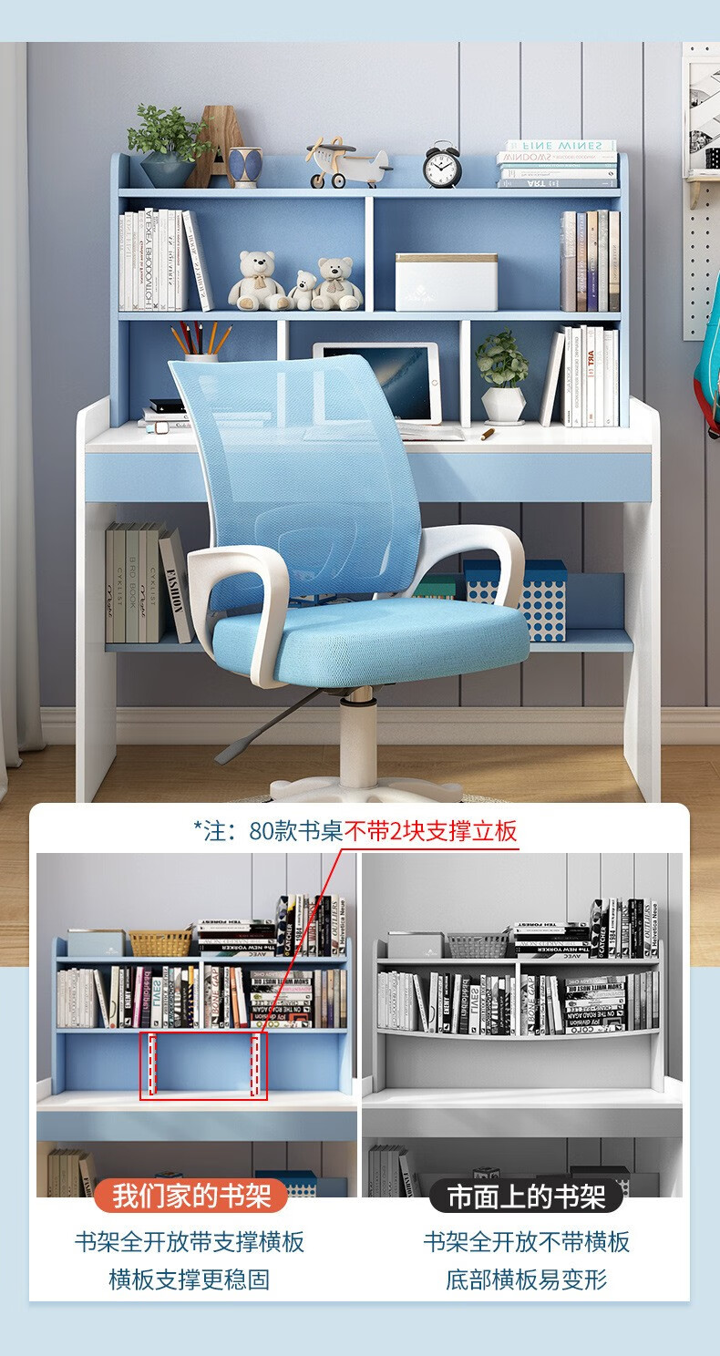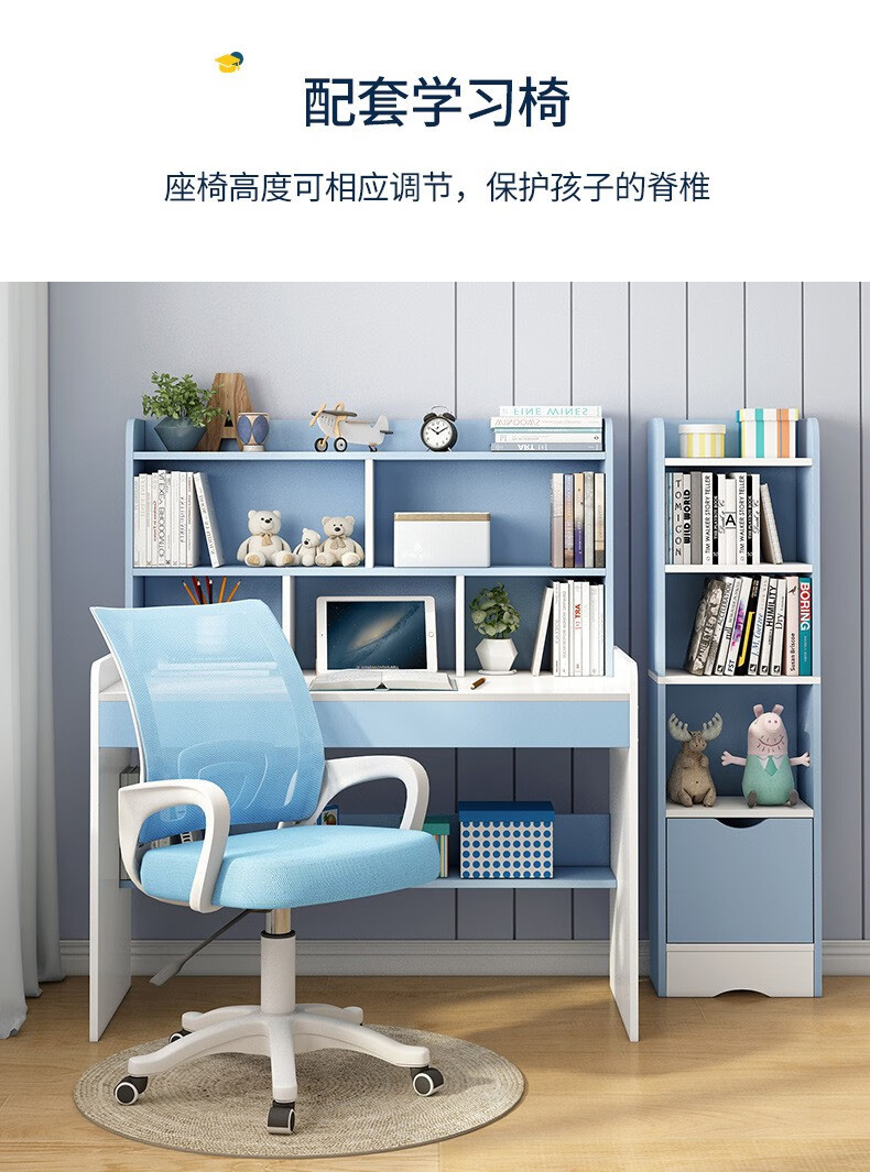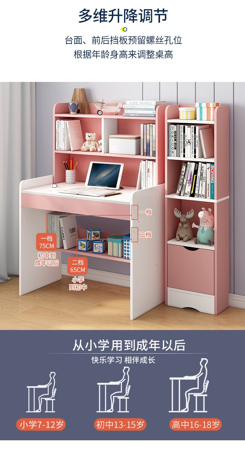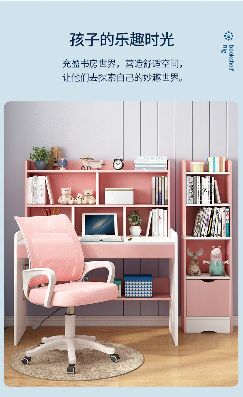 精灵空间 京东居家优选 儿童学习桌椅套装 学习桌 儿童书桌 可升降带书架 马卡龙粉 80cm桌椅套装...