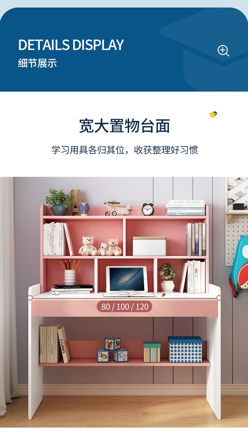京东精灵空间 京东居家优选 儿童学习桌椅套装 学习桌 儿童书桌 可升降带书架 马卡龙粉 80cm桌椅套装 到手价:999元