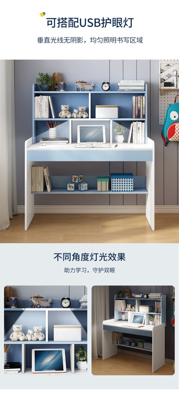 益威 儿童学习桌椅套装 作业学习桌 学习椅 儿童书桌 小学生书桌 写字台课桌 可升降 学习桌+机械双背椅-粉色【赠:阅读架+护眼灯】...