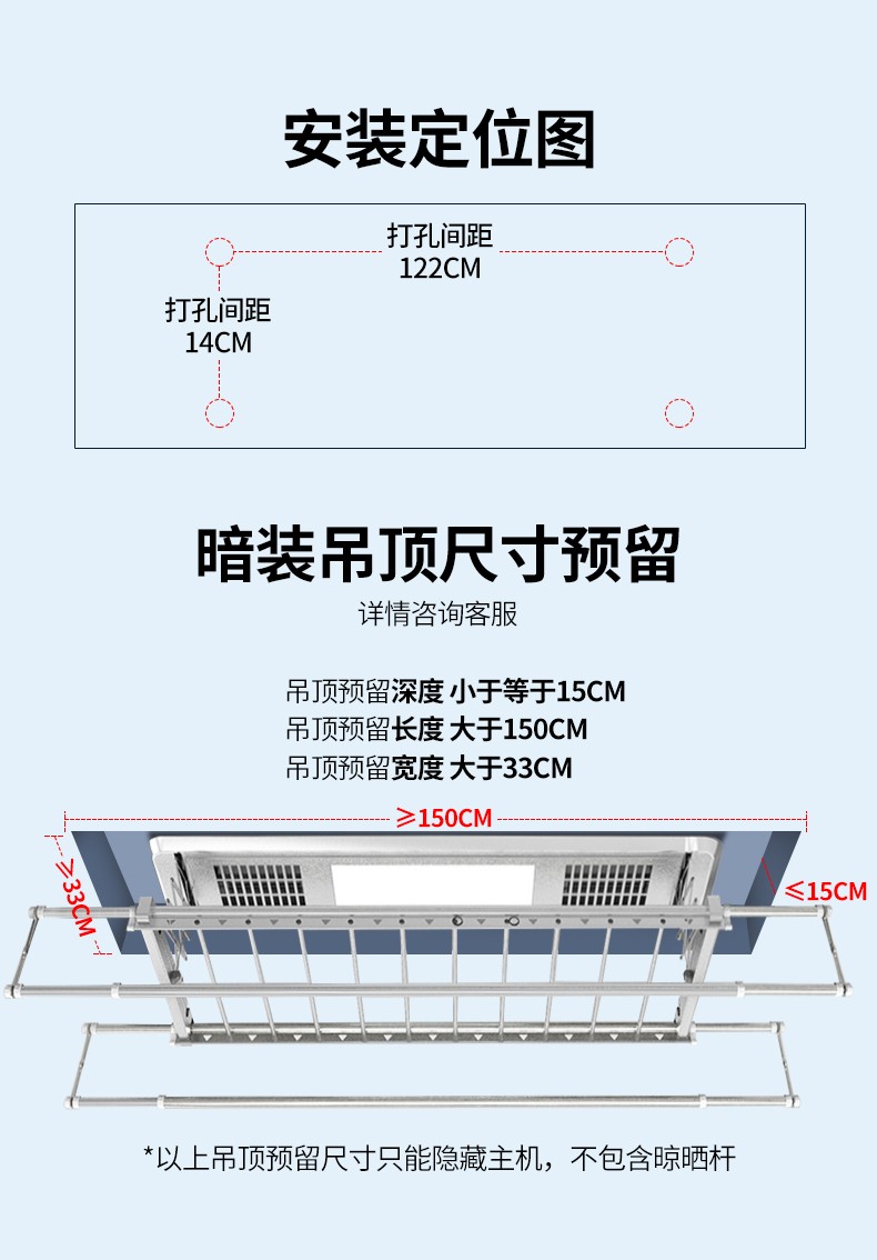 【免费安装】TALLYWOOD超薄电动晾衣架隐形遥控升降阳台嵌入式智能凉自动晾衣杆全屏照明晒衣机 经典黑+超薄9CM+全面屏+遥控升降...