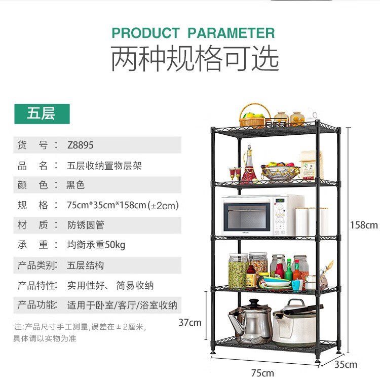 心家宜 厨房置物架 微波炉架 重型加粗金属管家用货架花架 厨房落地储物整理收纳架子 经典黑98247B心家宜 厨房置物架 微波炉架 重型加粗金属管家用货架花架 厨房落地储物整理收纳架子 经典黑98247B...