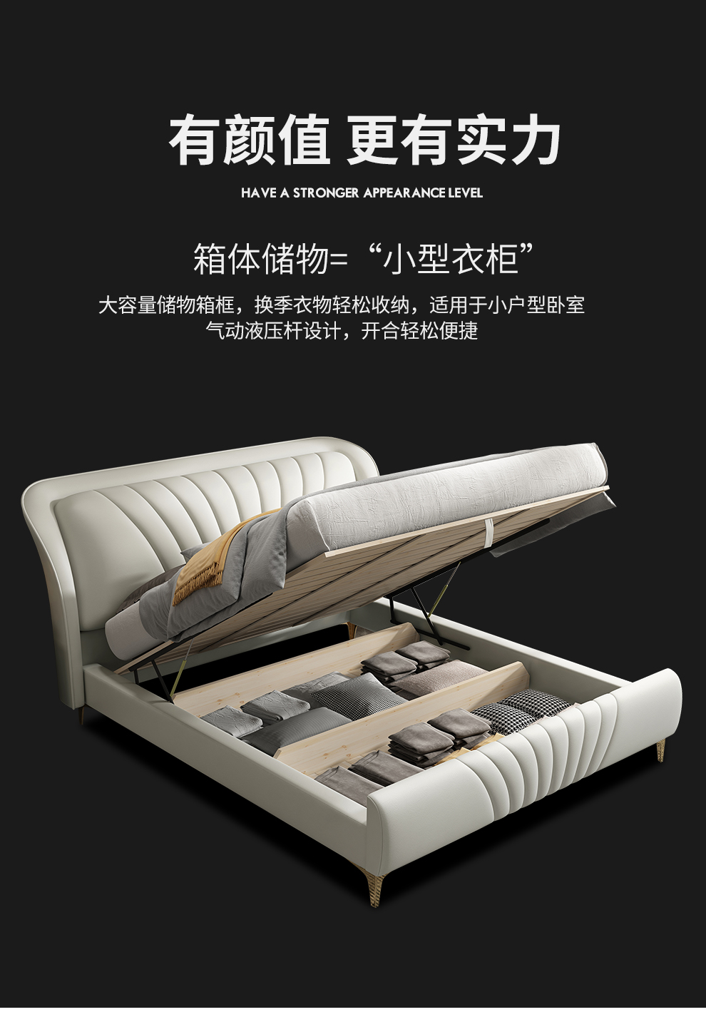 虎珂 床 北欧轻奢双人床现代简约榻榻米日式高箱床主卧大床板式婚床储物床 【不带灯】储物床 1500*2000-高箱床...