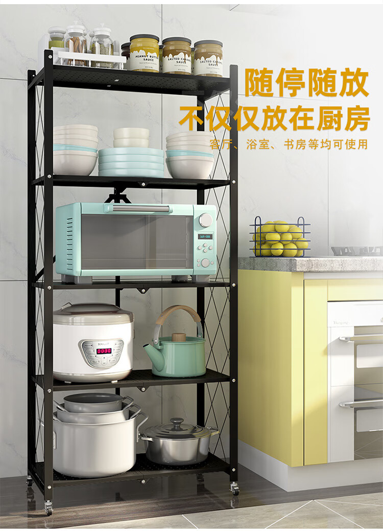 小媳妇 厨房置物架落地锅架微波炉架收纳架客厅层架卧室搁物架加固多层储物架架子 黑色【长58cm宽35cm高122cm】...