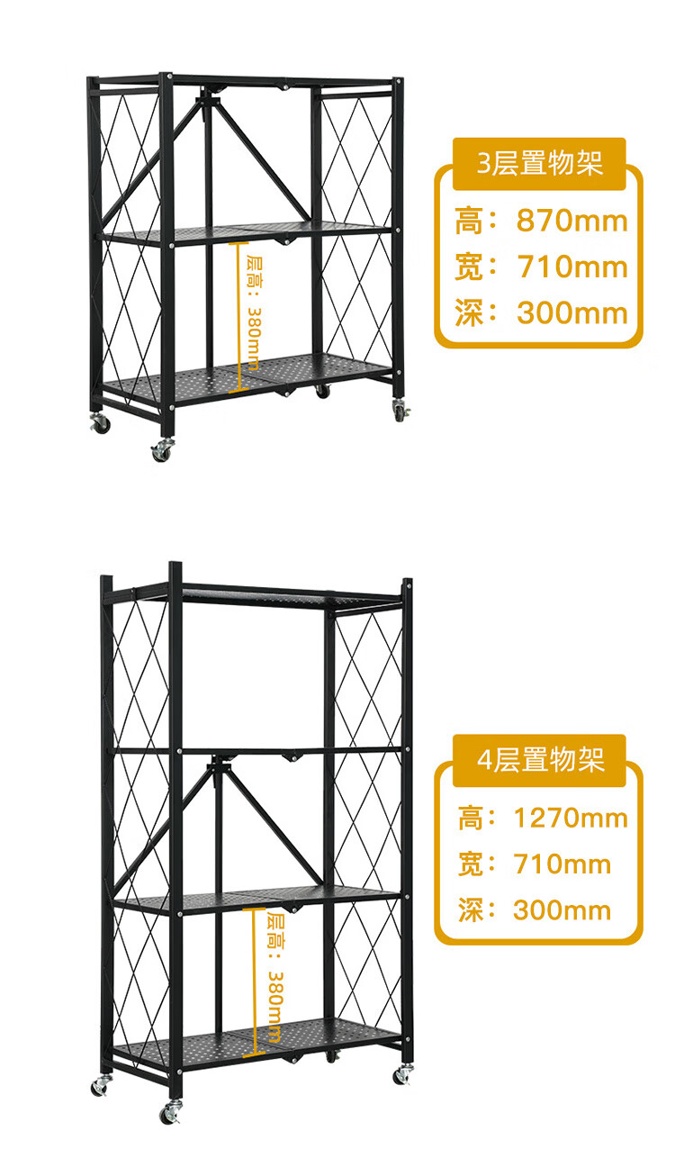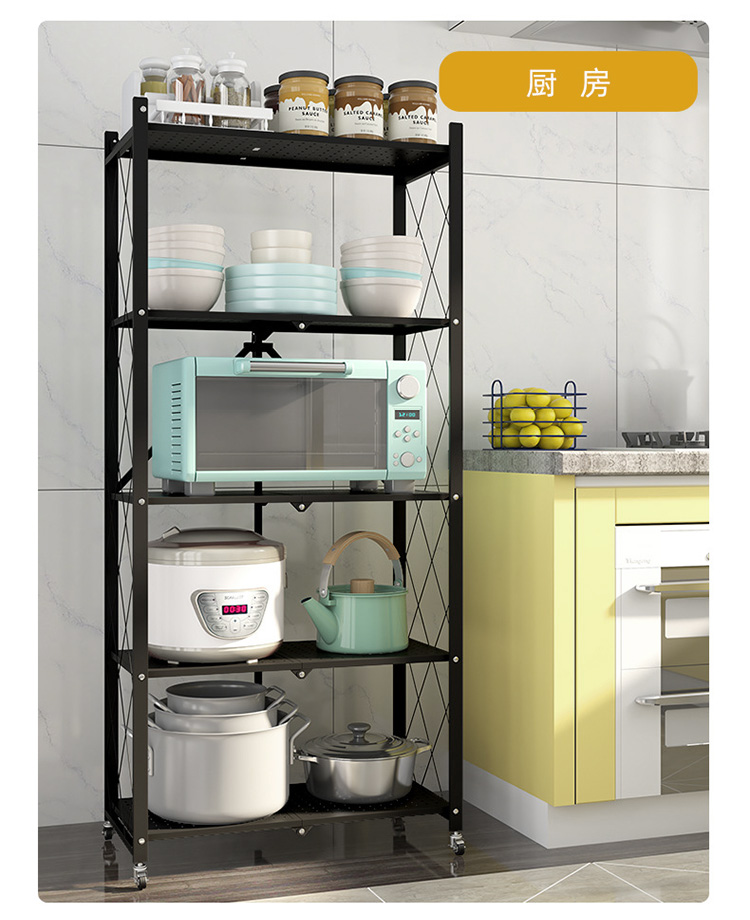 小媳妇 厨房置物架落地锅架微波炉架收纳架客厅层架卧室搁物架加固多层储物架架子 黑色【长58cm宽35cm高122cm】