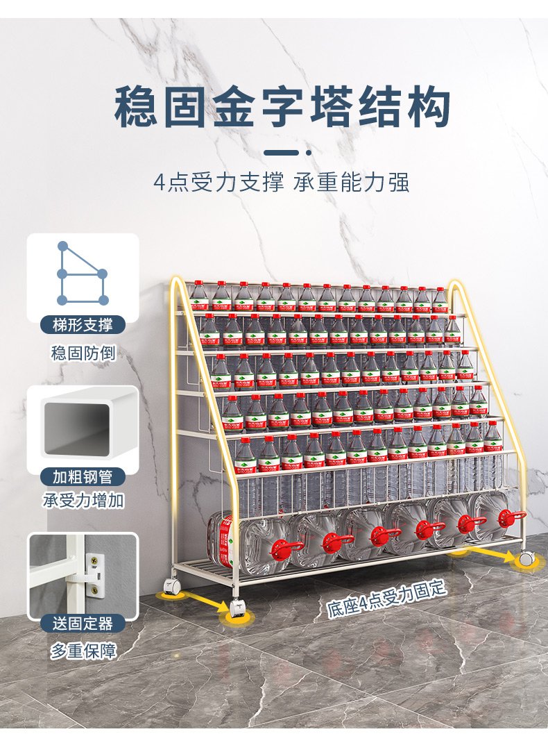 乐活时光 厨房置物架落地多层移动小推车置物架蔬菜收纳架家用零食架储物架 5层典雅黑【双把手置物架】...