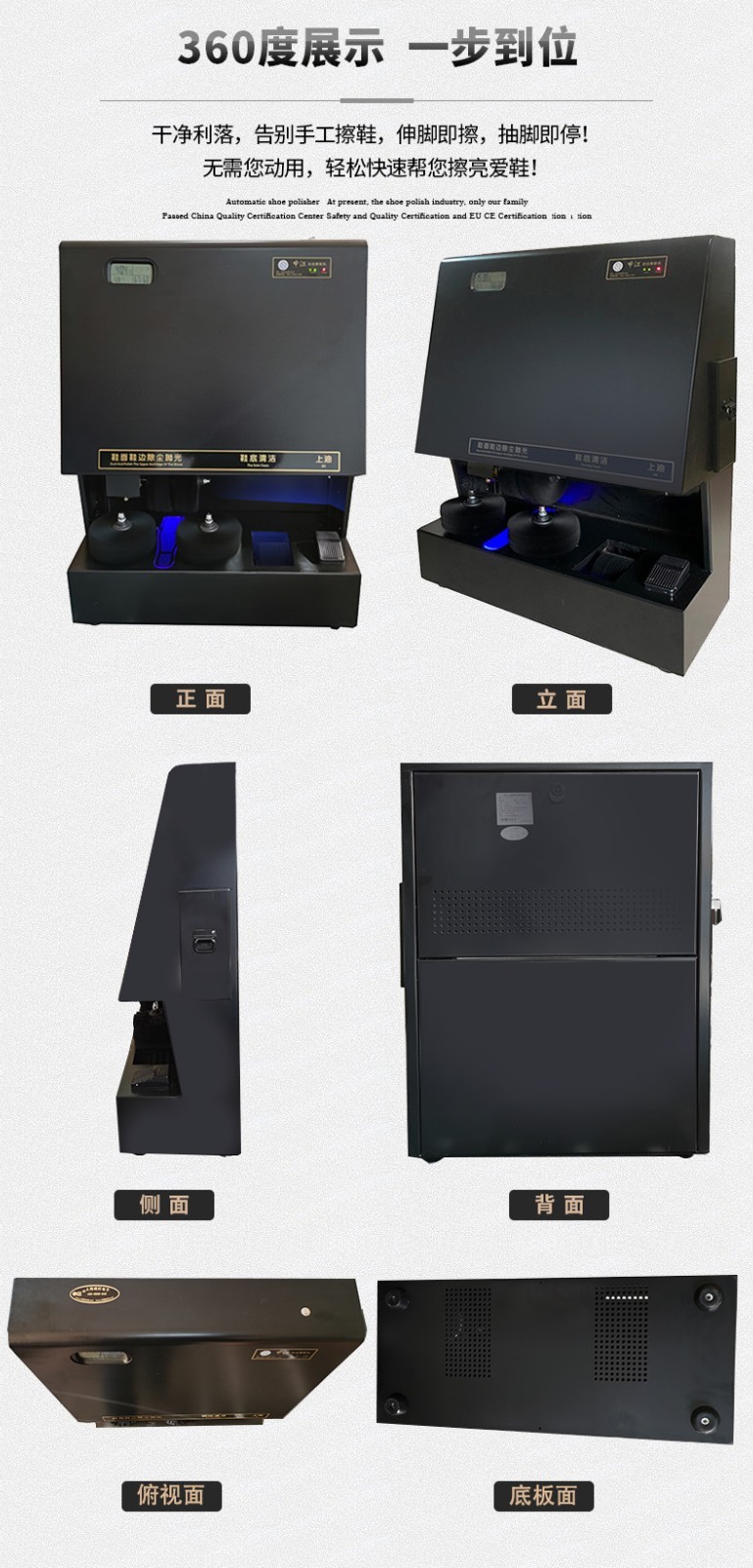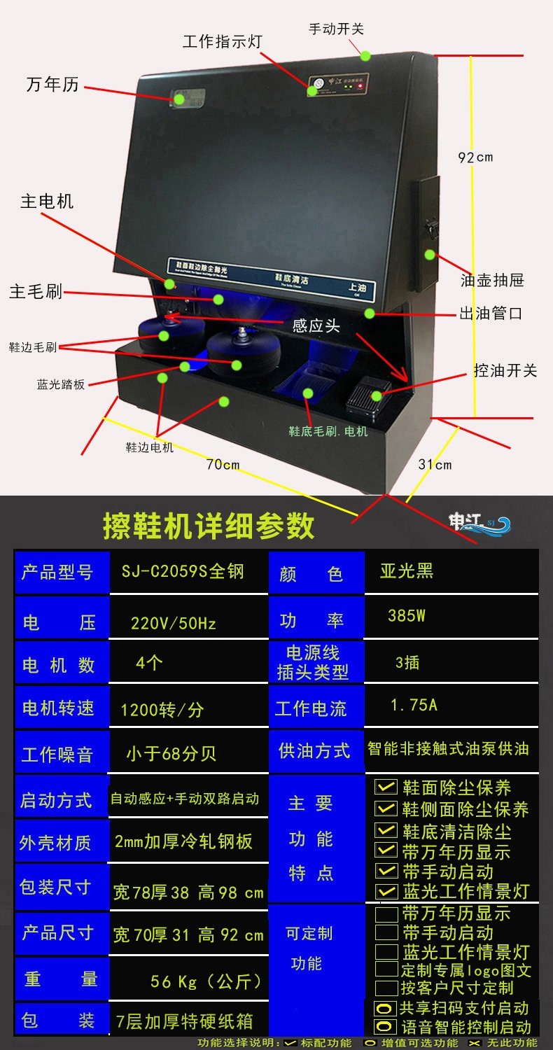 申江C2059S全自动擦鞋机全钢多功能擦鞋神器大堂前台办公楼酒店立式电动擦鞋机全钢 U3