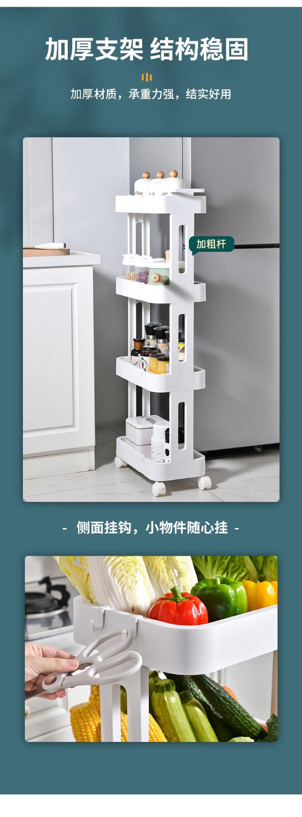 网纳推车置物架厨房置物架怎么样?优缺点揭秘【网纳推车置物架厨房置物架】值得买吗?价格和参数怎样?两边还带吊钩的,设计很是体贴生活!承重也很耐用,电饭煲都能放下!...