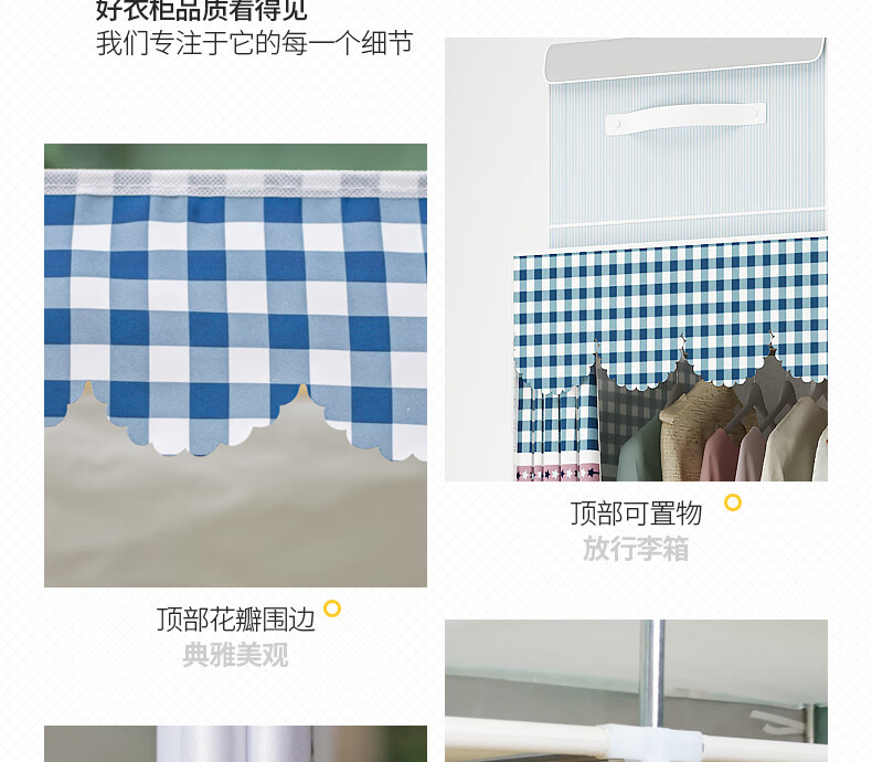 美家星简易衣柜怎么样?真实点评【美家星简易衣柜】怎么样?质量反馈真实情况?京东的送货速度依然的神速,包装没有我想象的笨重,简易大方,这种面料像遮雨布那种滑滑的,...
