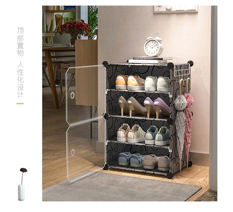 索尔诺 简易鞋架子家用门口经济型收纳神器宿舍小窄网红卧室好看防尘鞋柜 三层鞋架8063-黑纱纹-宽60cm...