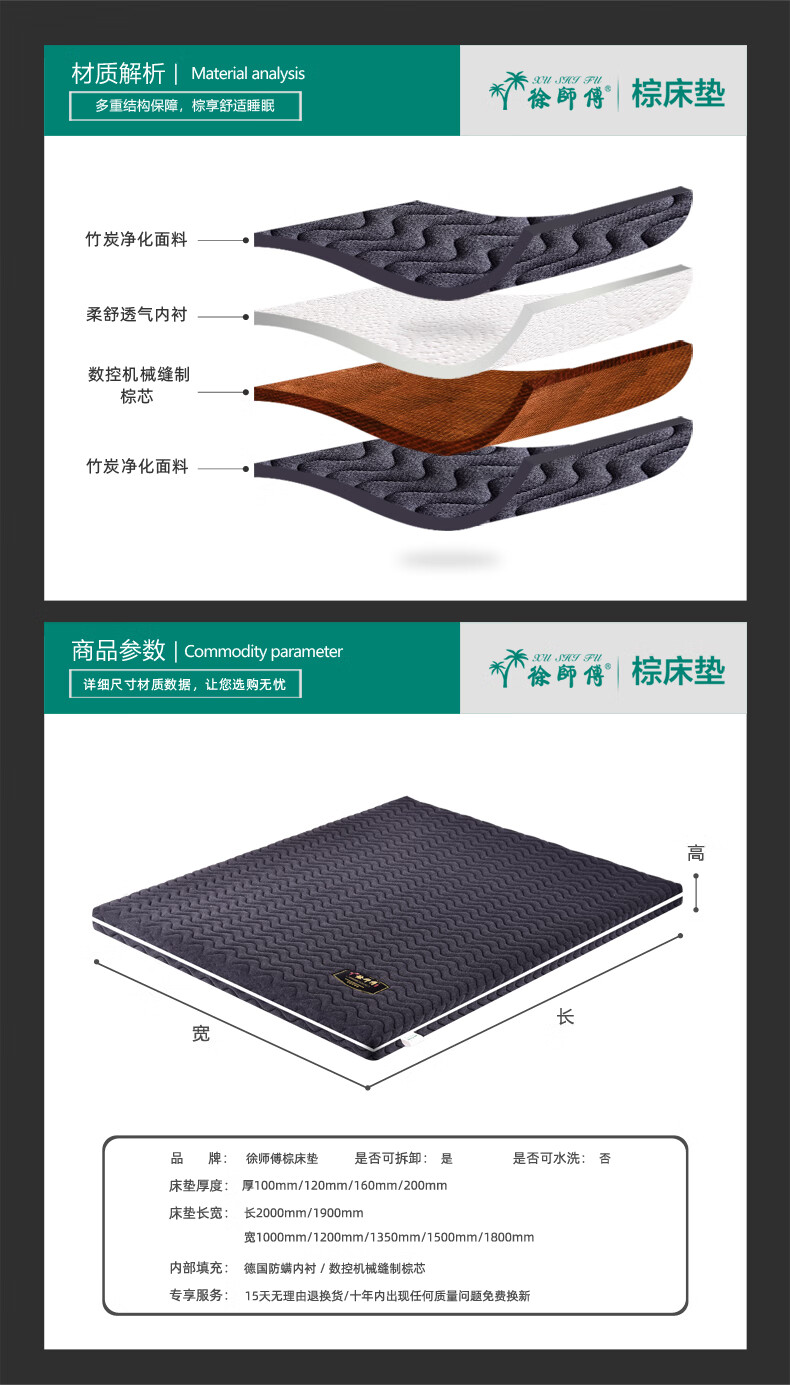 徐师傅山棕床垫怎么样?图文解说【徐师傅山棕床垫】怎么样?质量真的好吗?爆料测评?发货很快,做工很精致,质量挺棒的,价格很划算,非常的满意徐师傅全山棕床垫硬棕垫手...