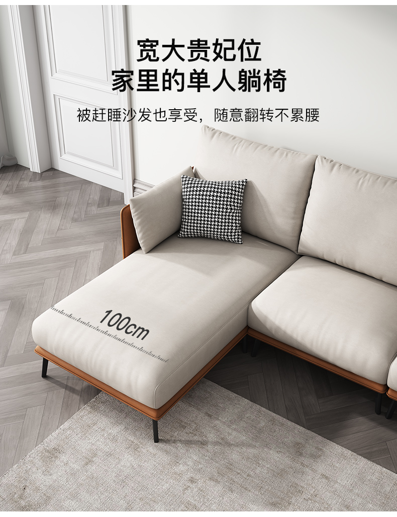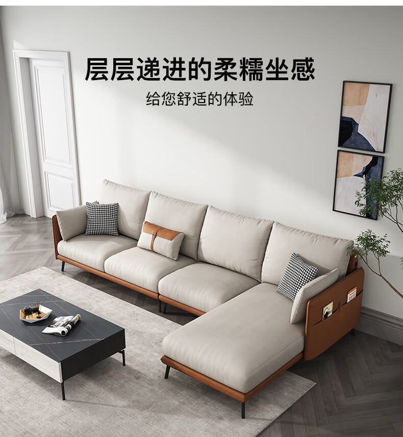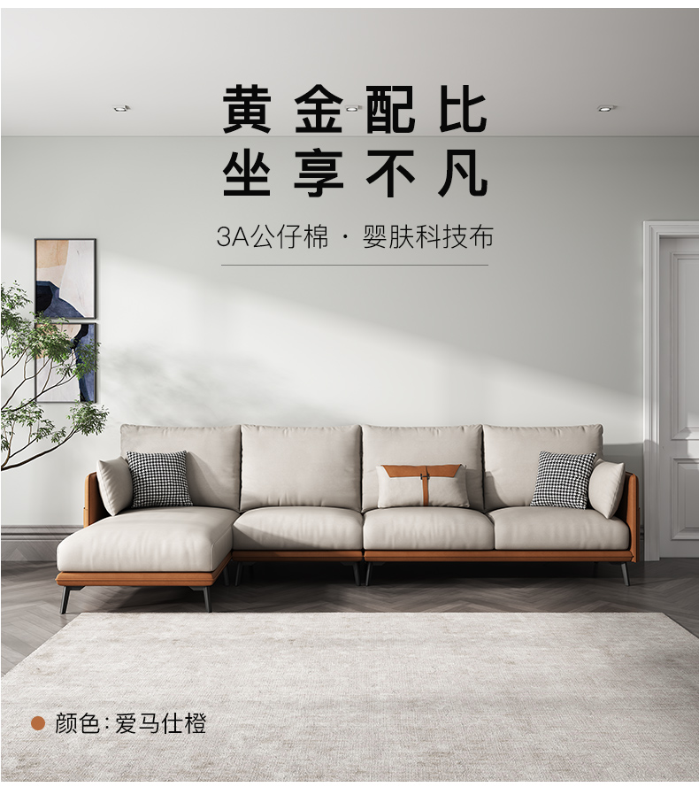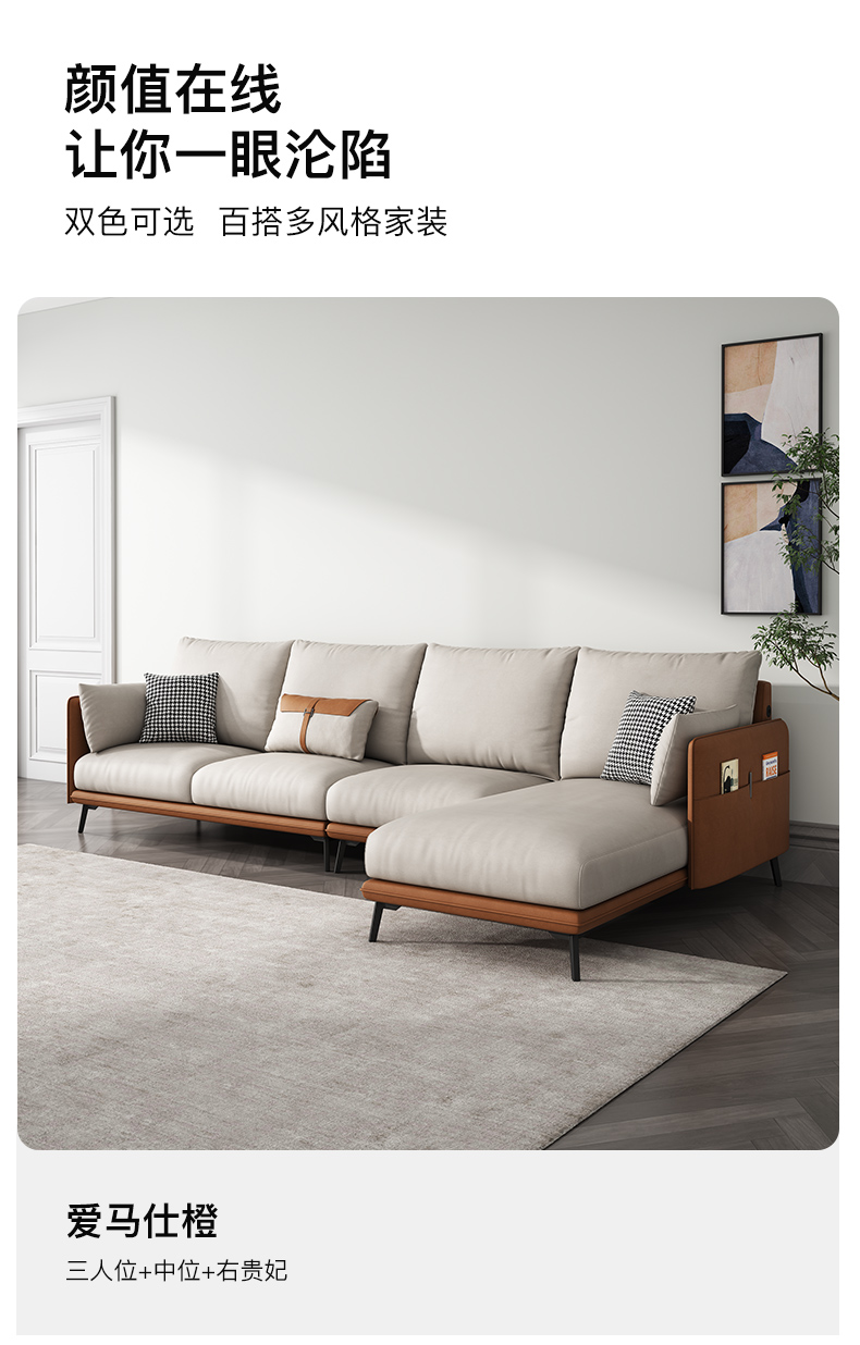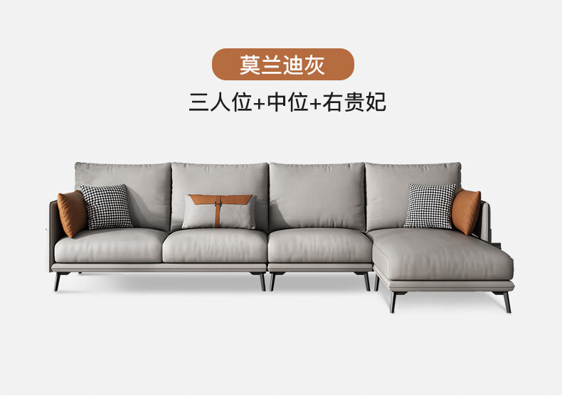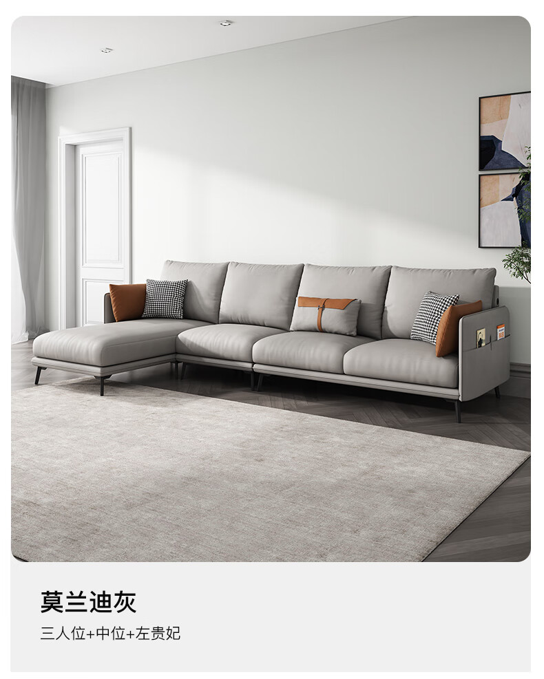 简约现代极简轻奢北欧风格免洗科技布乳胶沙发大小户型客厅家具 单人+双人+右贵妃 纳米防水科技布(弹簧乳胶款)