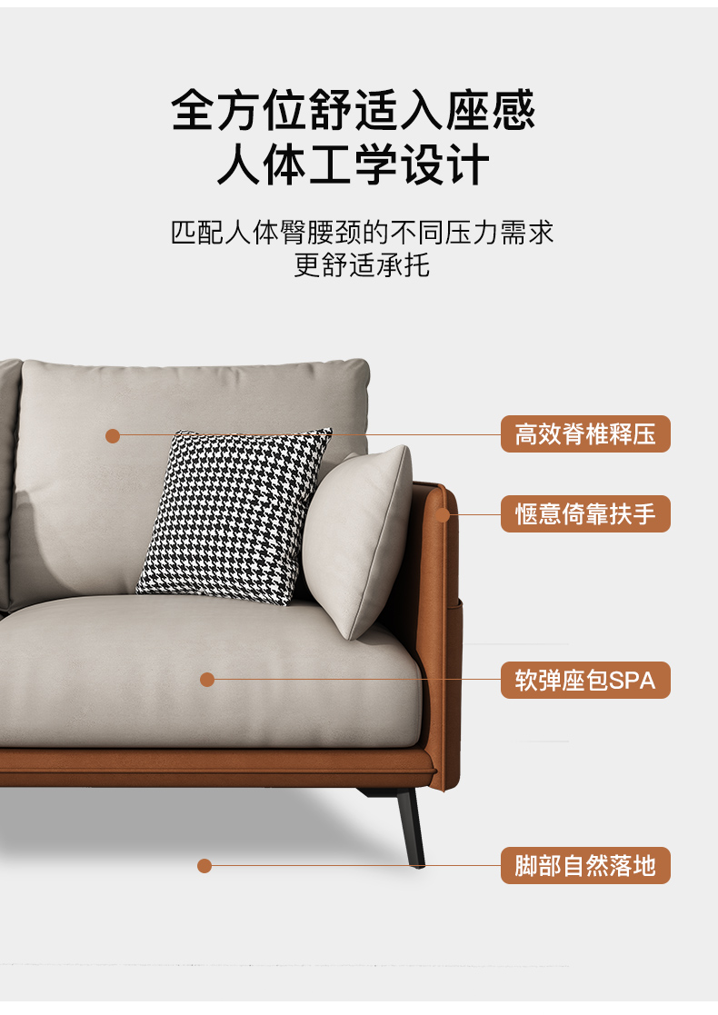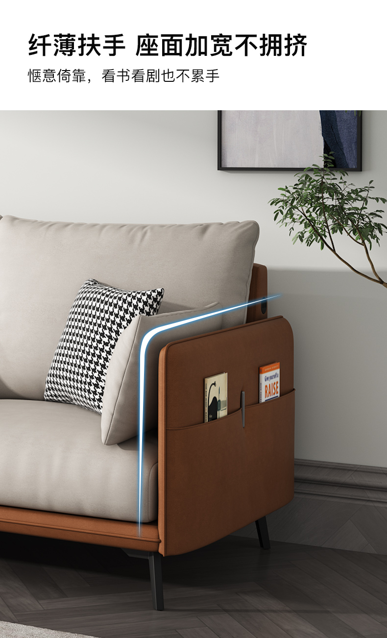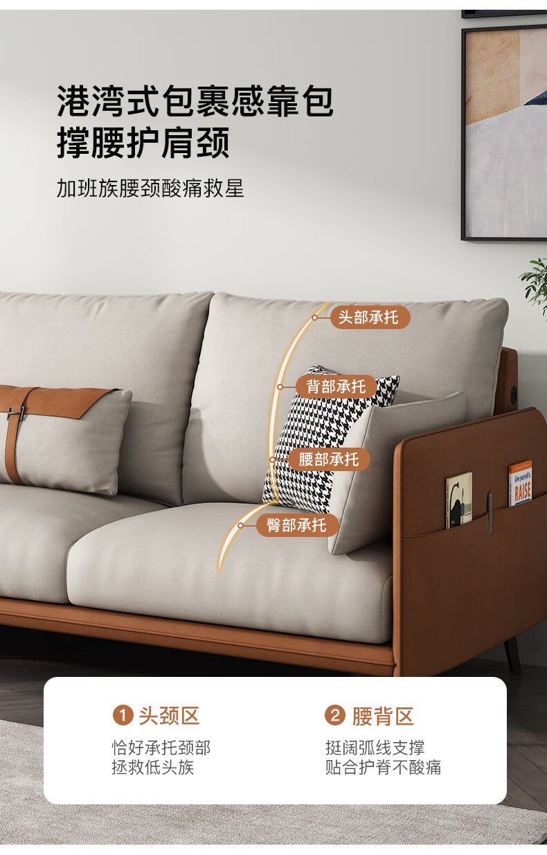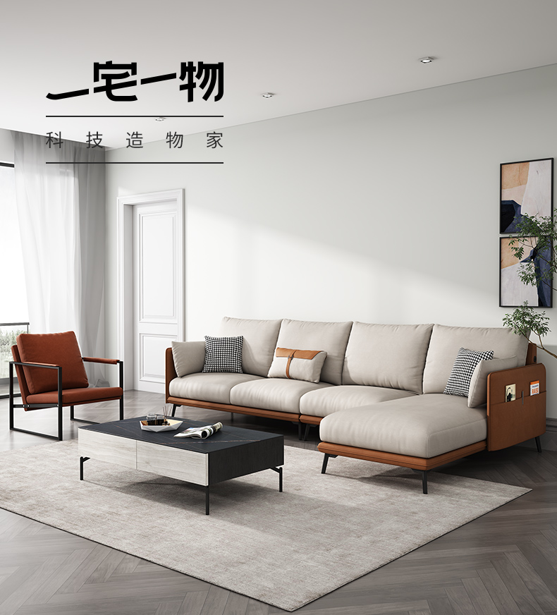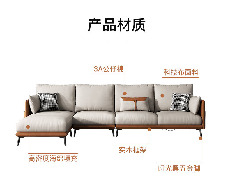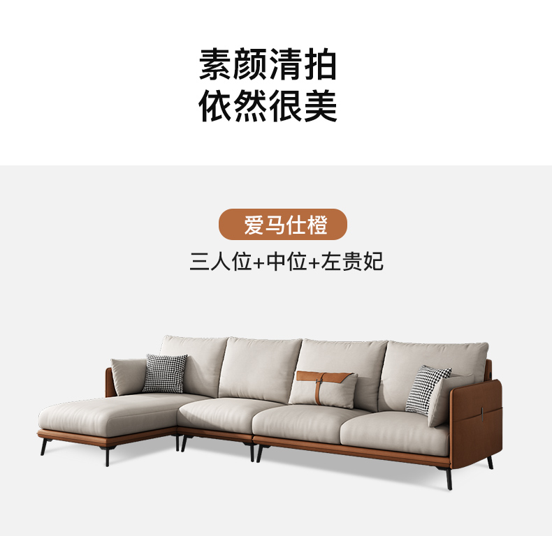 简约现代极简轻奢北欧风格免洗科技布乳胶沙发大小户型客厅家具 单人+双人+右贵妃 纳米防水科技布(弹簧乳胶款)