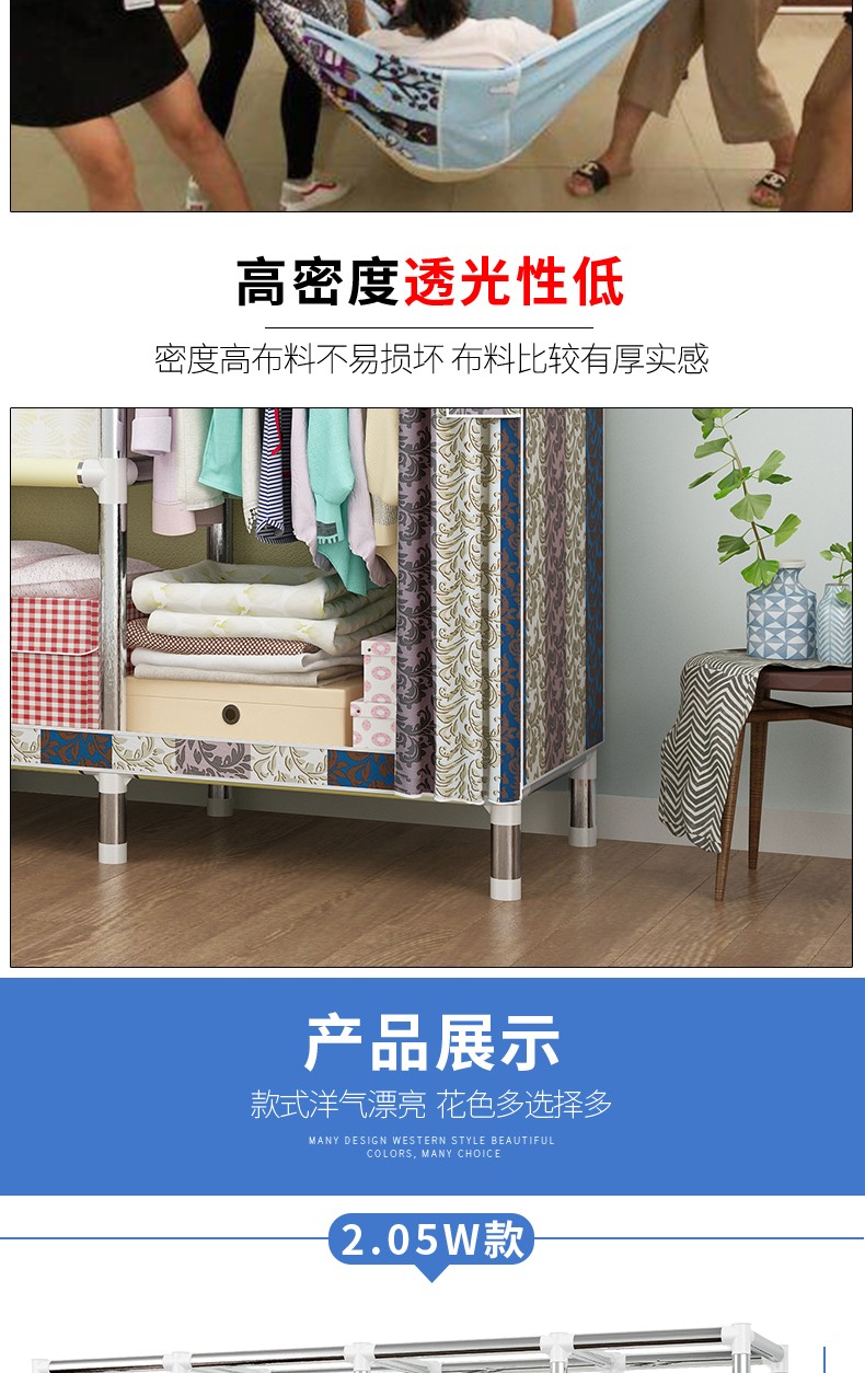 美家星简易衣柜怎么样?真实点评【美家星简易衣柜】怎么样?质量反馈真实情况?京东的送货速度依然的神速,包装没有我想象的笨重,简易大方,这种面料像遮雨布那种滑滑的,...