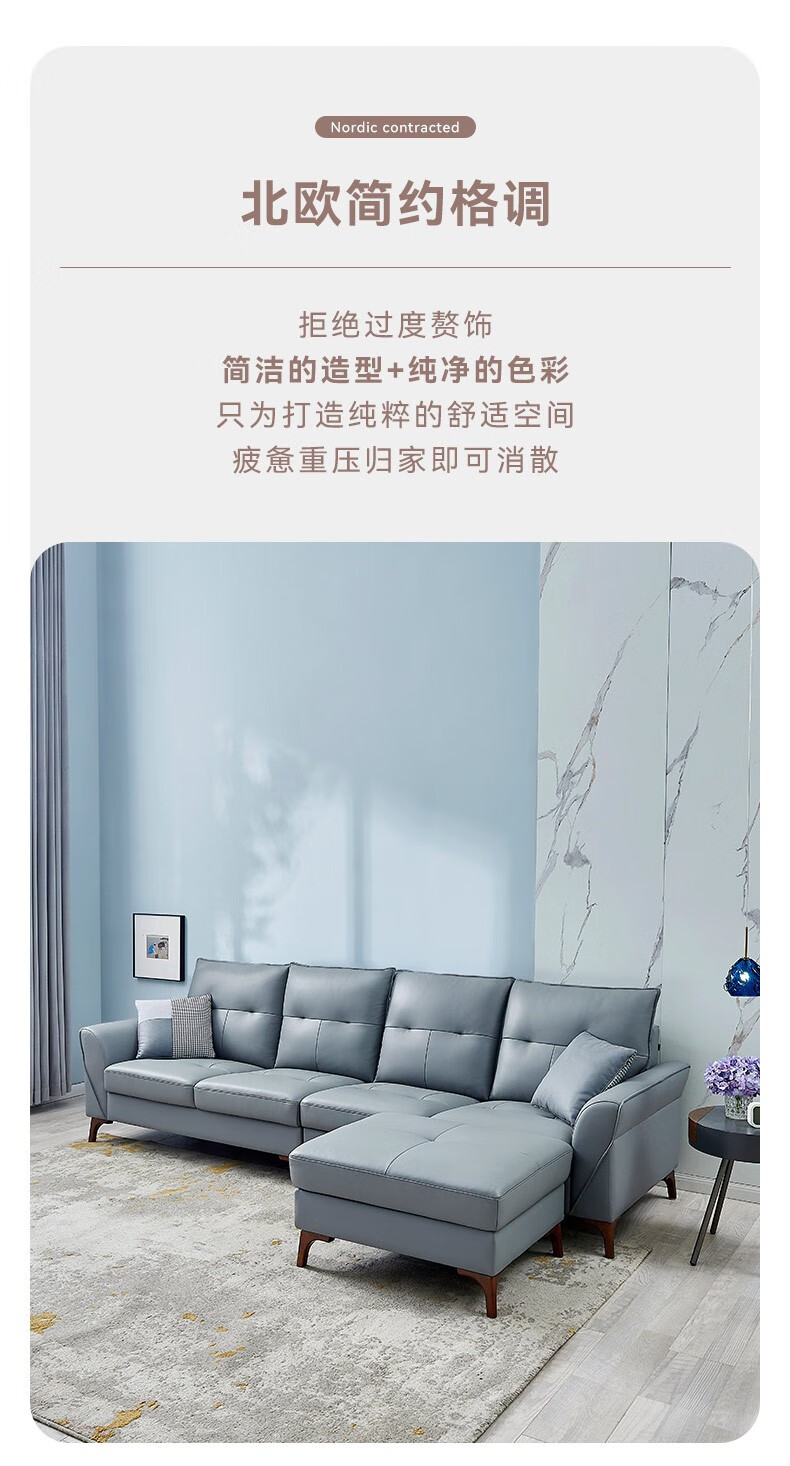 慕跃沙发真皮羽绒沙发软客厅北欧简约现代轻奢风意式极简纳帕皮沙发 三人位+脚踏 沙发...