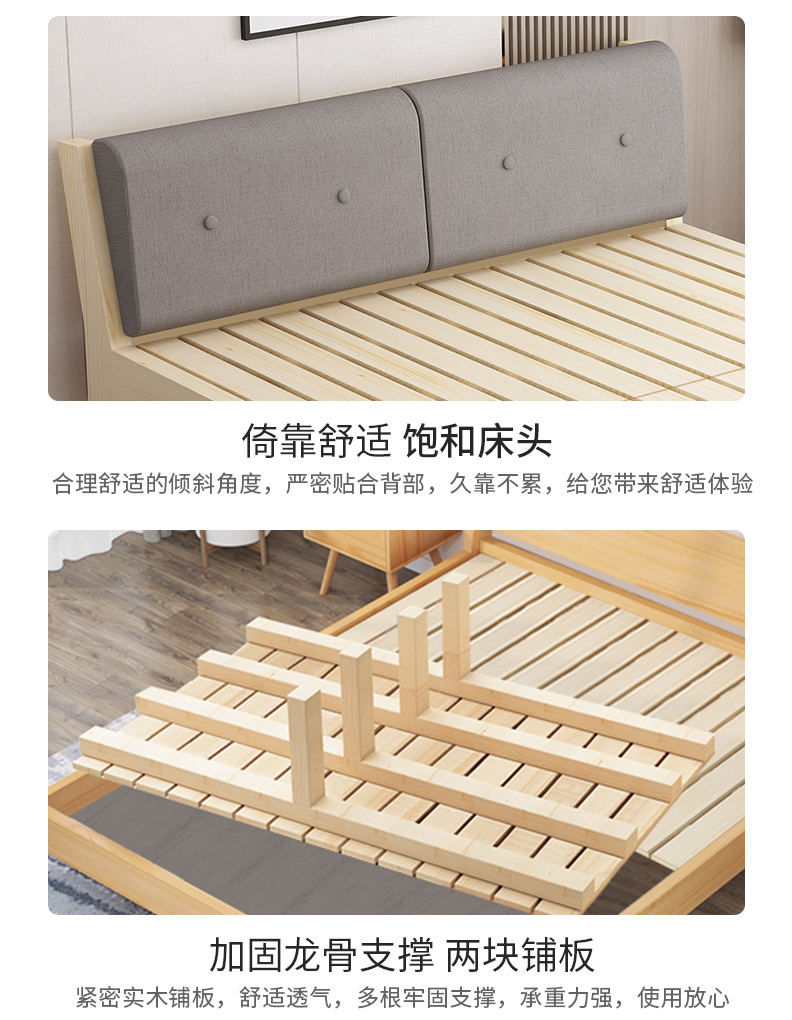 十亿客 实木床1.8米双人床北欧大床1.5单人床1.2米松木成人婚床卧室床储物床现代简约 原木免漆无抽屉 150cm*200cm十亿客 实木床1.8米双人床北欧大床1.5单人床1.2米松木成人婚床卧室床储物床现代简约 原木免漆无抽屉 150cm*200cm...