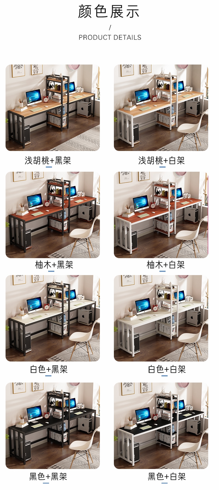 【活动蕞后一天结束】蓝皙 电脑桌台式 家用书桌现代简约钢化玻璃书桌书架组合一体桌简易办公写字学习桌 【单桌】黑面+黑架 120*60*75cm(推荐尺寸)