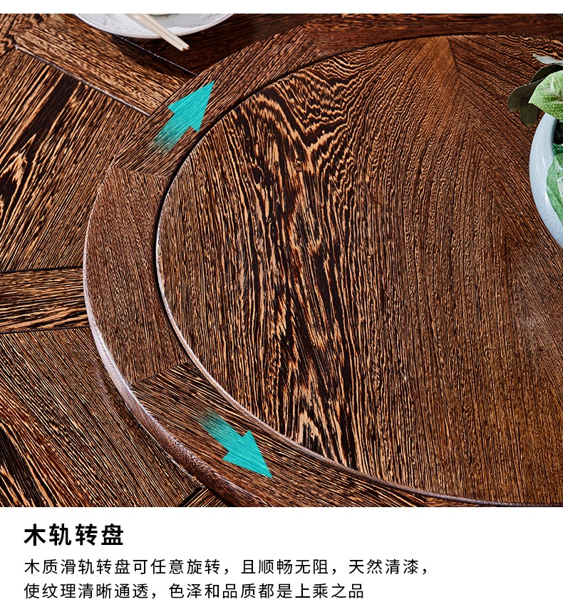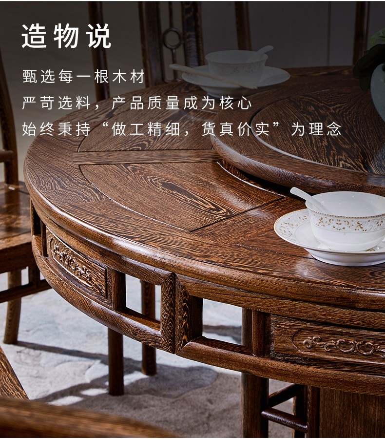京东卡洛森餐桌 实木餐桌椅组合1.8米新中式酒店大圆桌带转盘家用圆形12人饭桌子 黑紫色(实木椅) 1.2米单桌(配0.8m转盘) 到手价:1580元