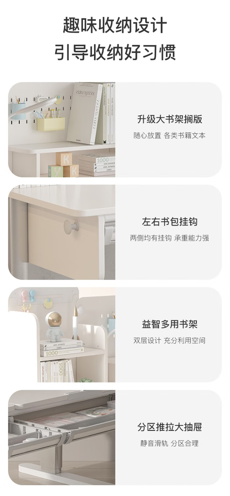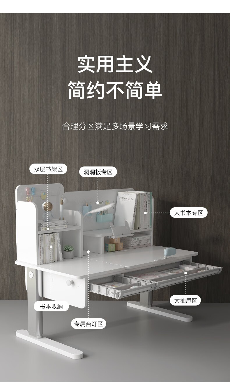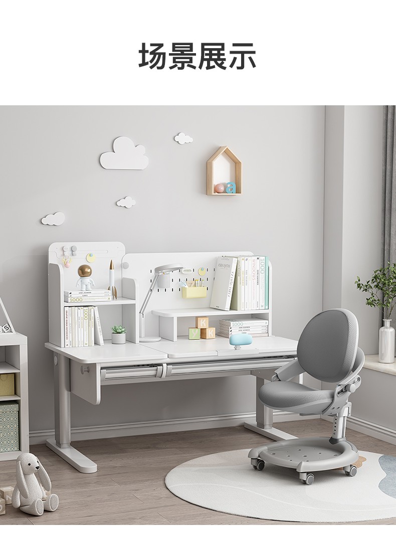 京东精灵空间 京东居家优选 儿童学习桌椅套装 学习桌 儿童书桌 可升降带书架 马卡龙粉 80cm桌椅套装 到手价:999元