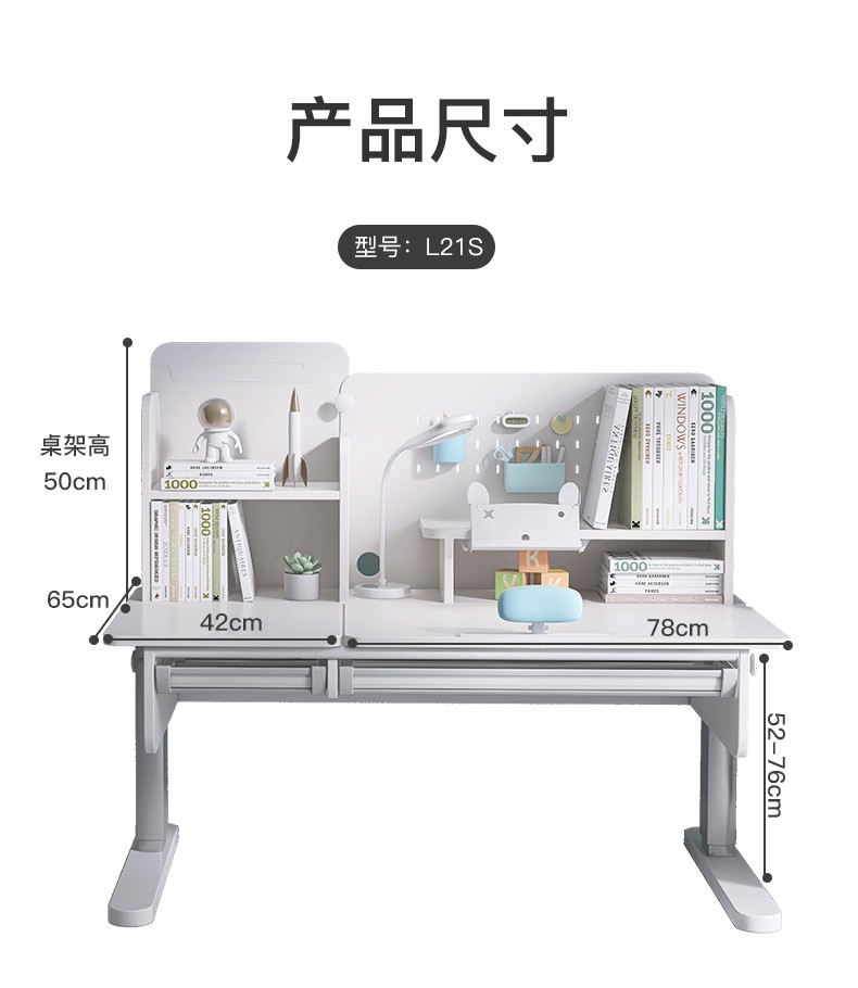 精灵空间 京东居家优选 儿童学习桌椅套装 学习桌 儿童书桌 可升降带书架 马卡龙粉 80cm桌椅套装...