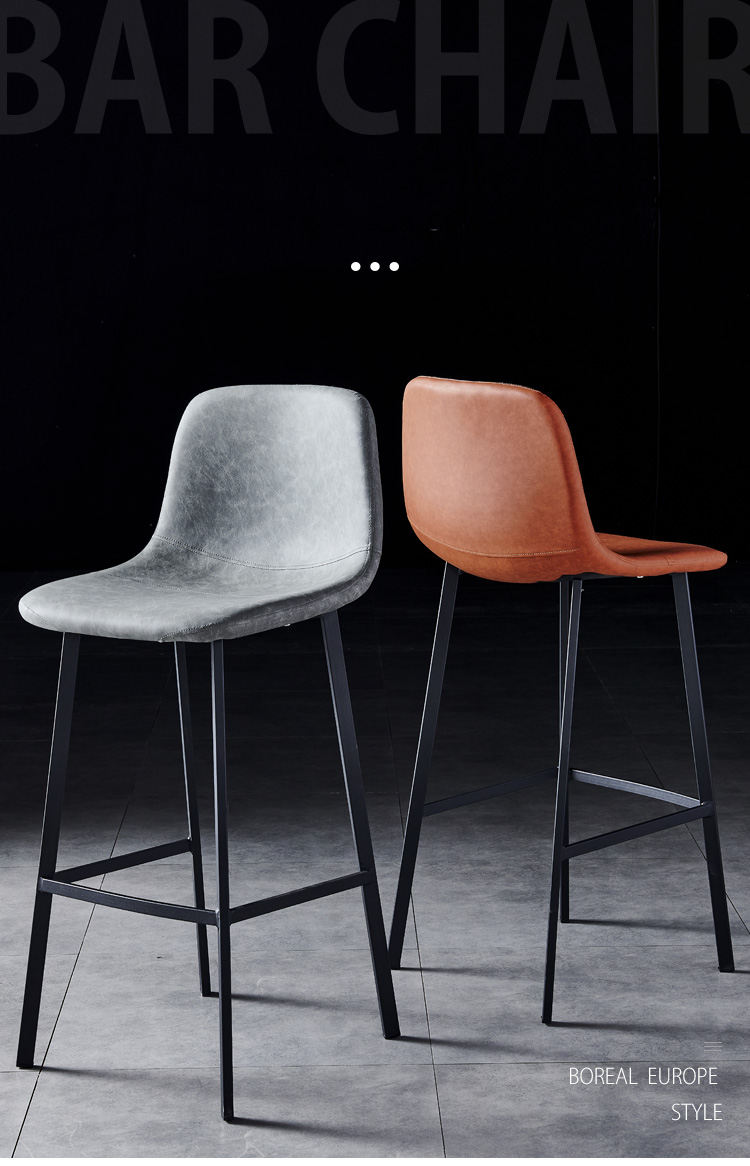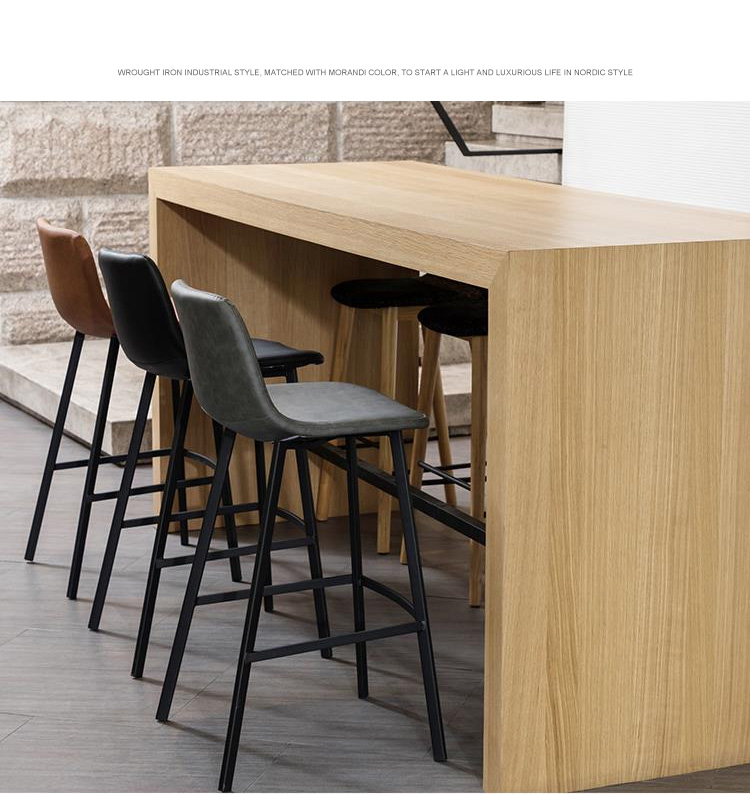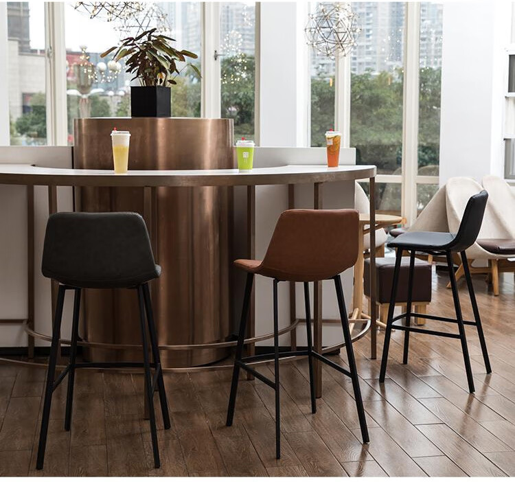 美式loft高脚椅子铁艺吧台椅实木酒吧椅复古咖啡厅前台带靠背 坐高75CM实木坐垫无靠背