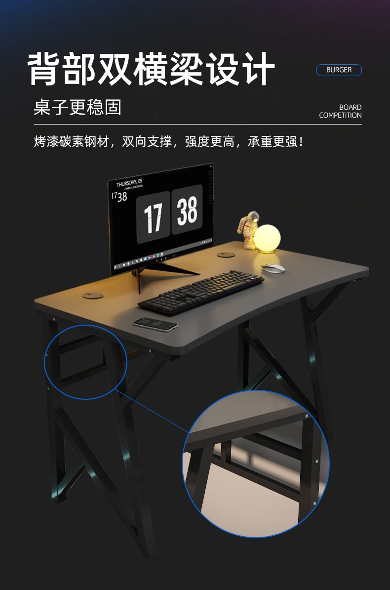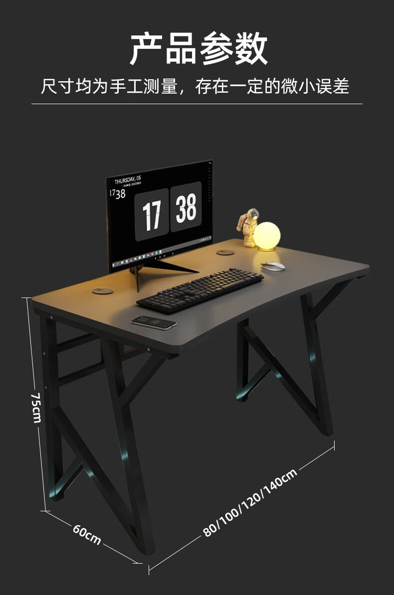 电脑桌台式学习桌家用现代简约办公写字桌长方形书桌出租屋工作台桌子电竞游戏桌 【升级加厚款】枫樱木色120*40...