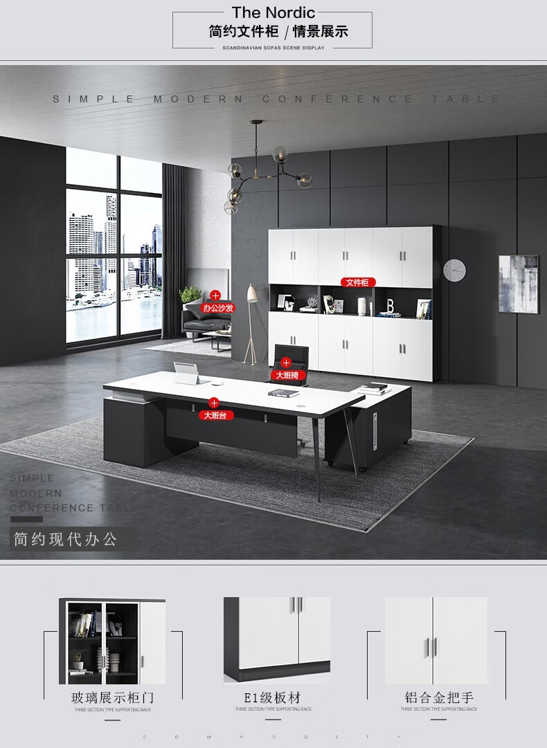 龙案 办公桌椅组合简约现代4人位职员桌办公室卡座屏风工位卡位钢架电脑桌子便宜办公家具定制白色 办公椅