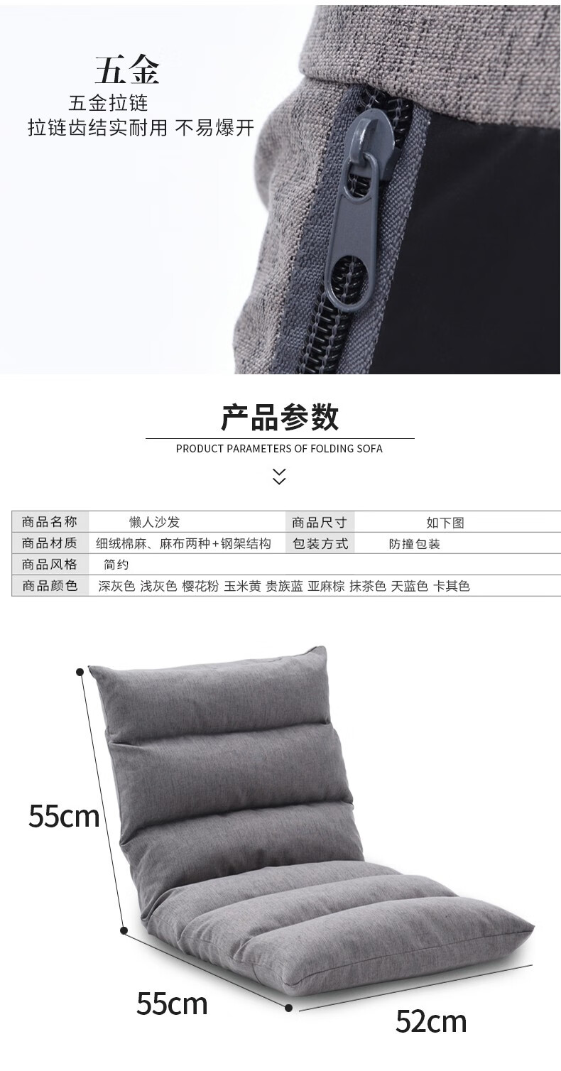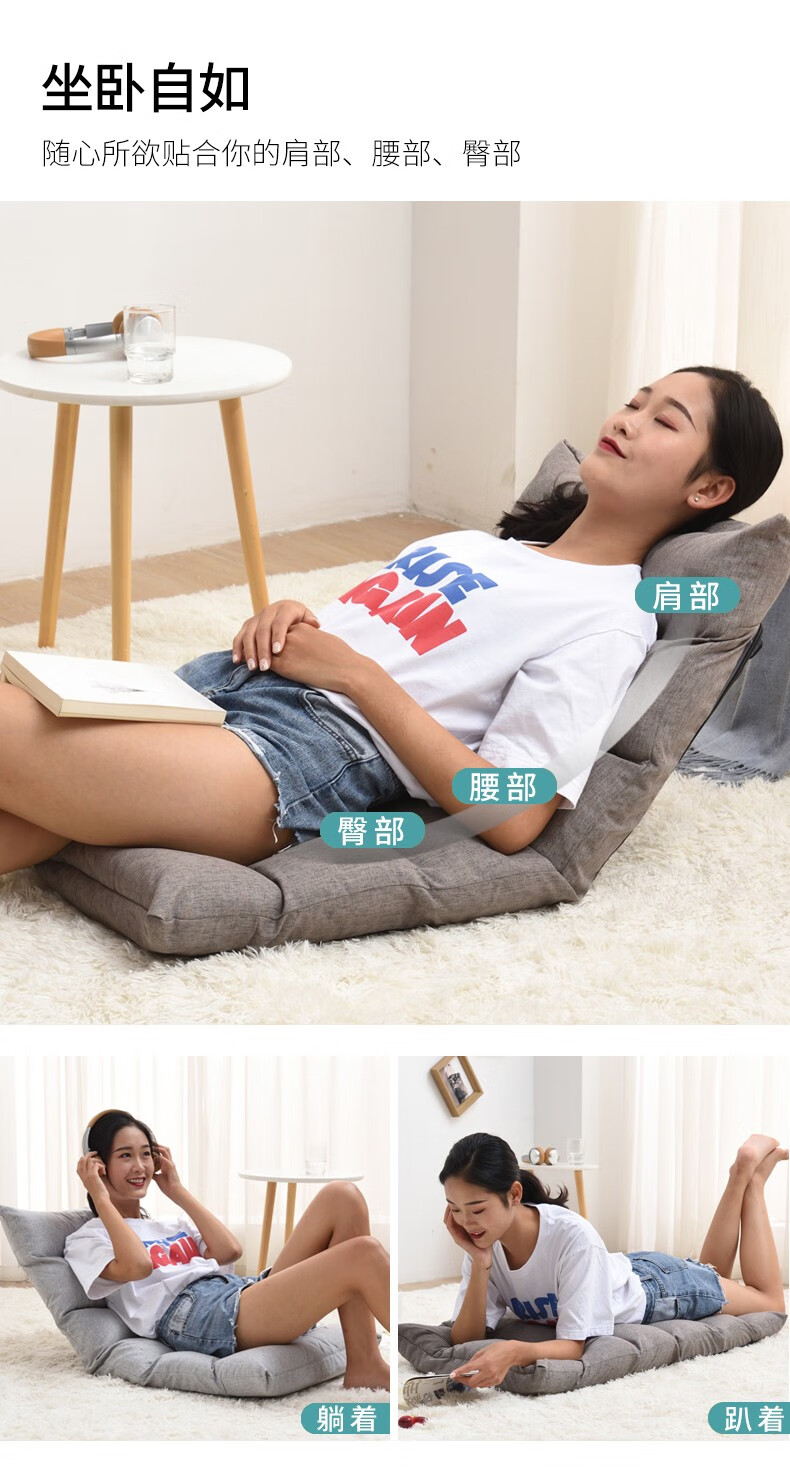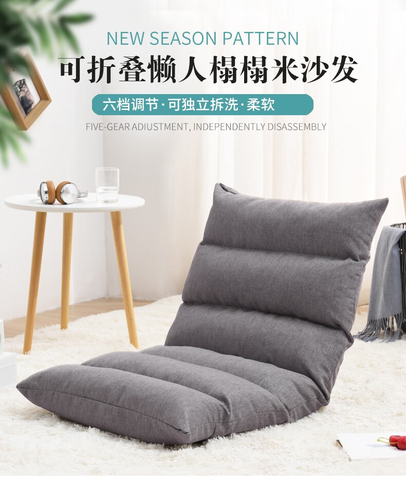京东古雷诺斯 懒人椅 懒人沙发单人迷你卧室宿舍可拆洗可折叠椅子 N699-01-三挡可调灰色+搁脚凳 到手价:159元