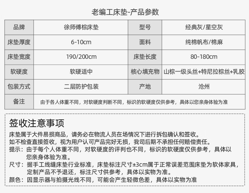 性价比比较【徐师傅山棕床垫】怎样样的质量?优缺点有哪些?徐师傅山棕床垫怎么样?性价比比较【徐师傅山棕床垫】怎样样的质量?优缺点有哪些??物流挺快,东西挺好的,问了很多问题都耐心解答,爱了,实在是太便宜了徐师傅全山棕床...