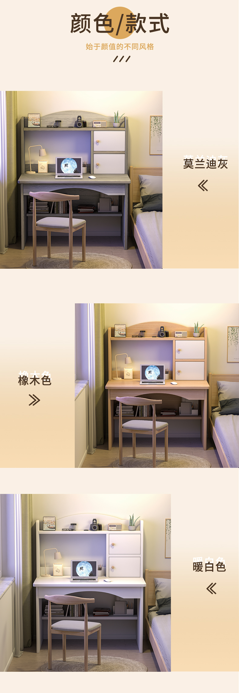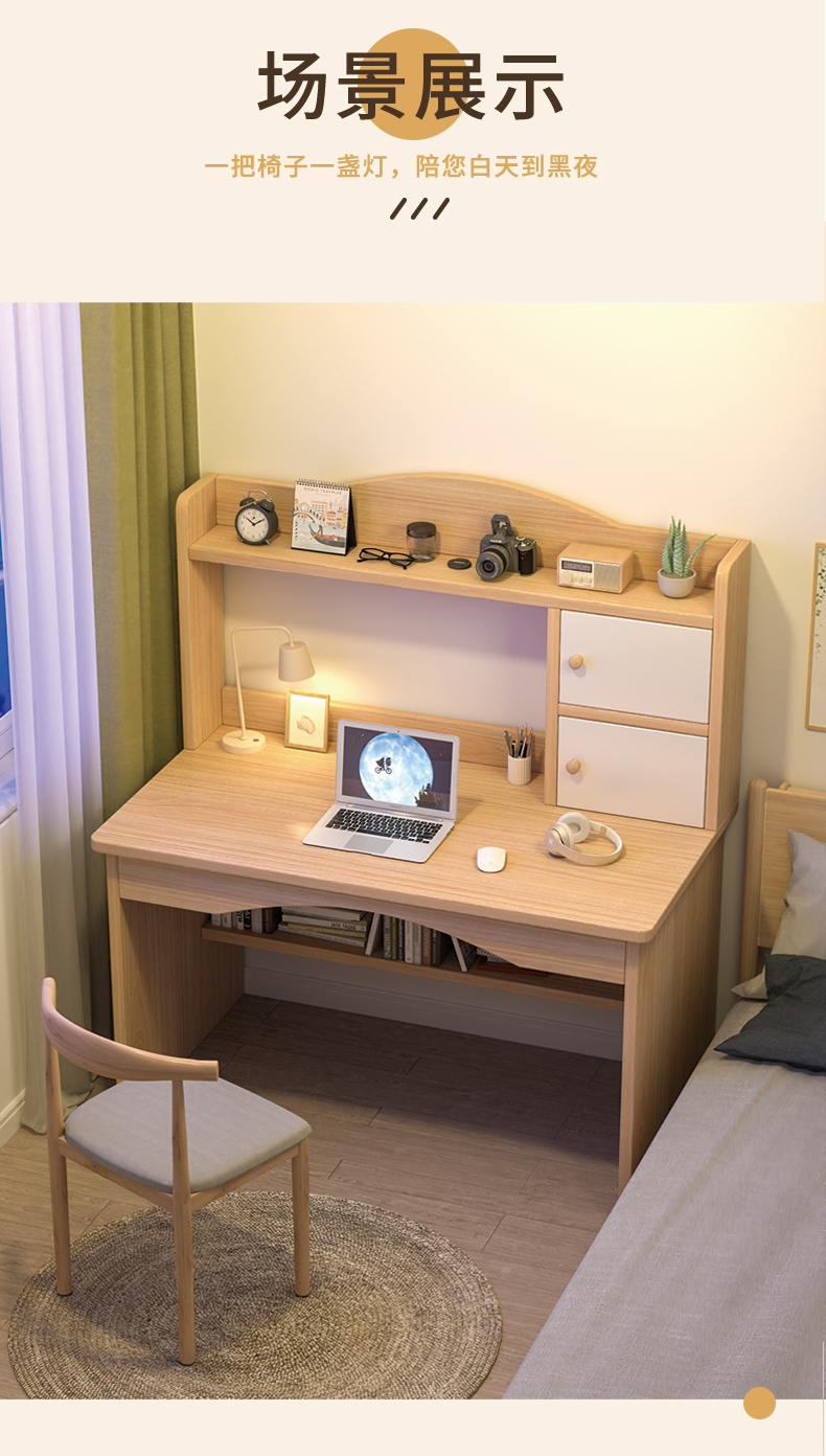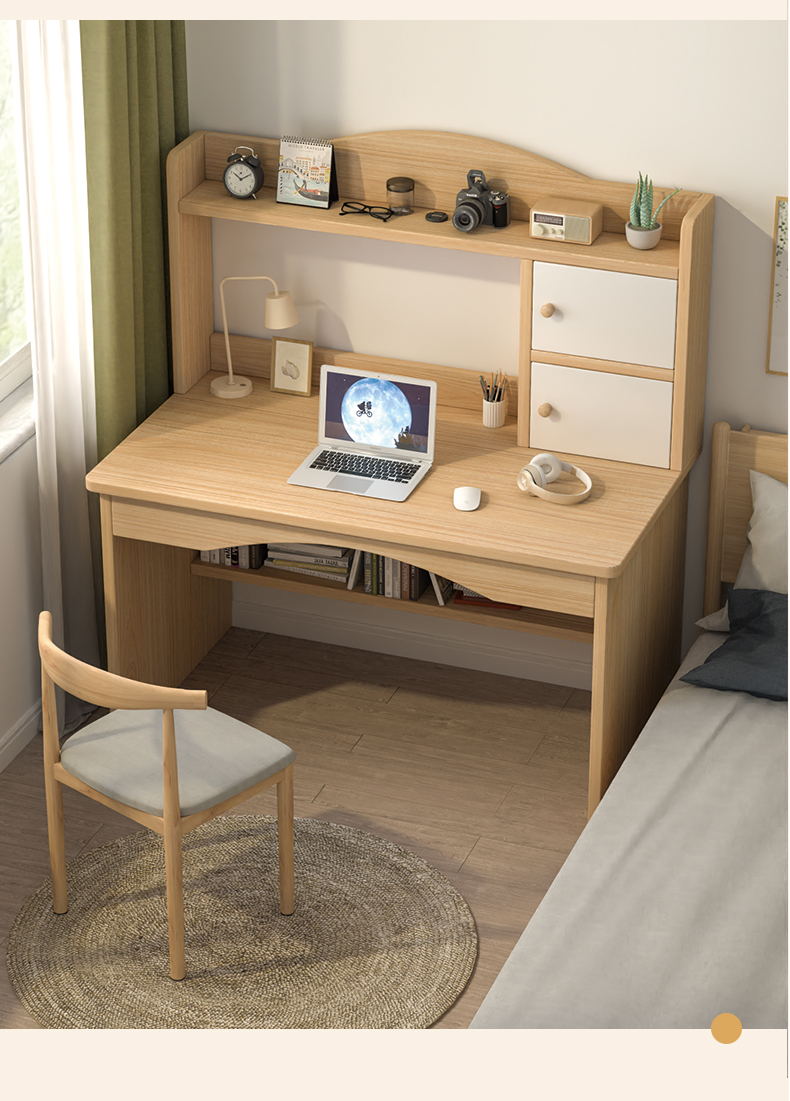 沐黛琳 电脑桌台式书桌书柜组合实木学习桌钢化玻璃柜门感应灯带书架一体组合写字学习桌-SZSG1 书桌(白色)+双门书柜(木门) 1.6米(双玻璃门书桌)