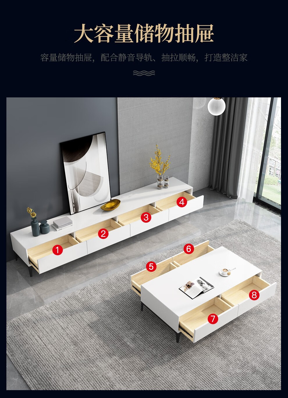 【5折】梦美斯宣 茶几 轻奢茶几电视柜组合实木茶几客厅美式家具设计师茶几简约现代 M801 茶几电视柜...