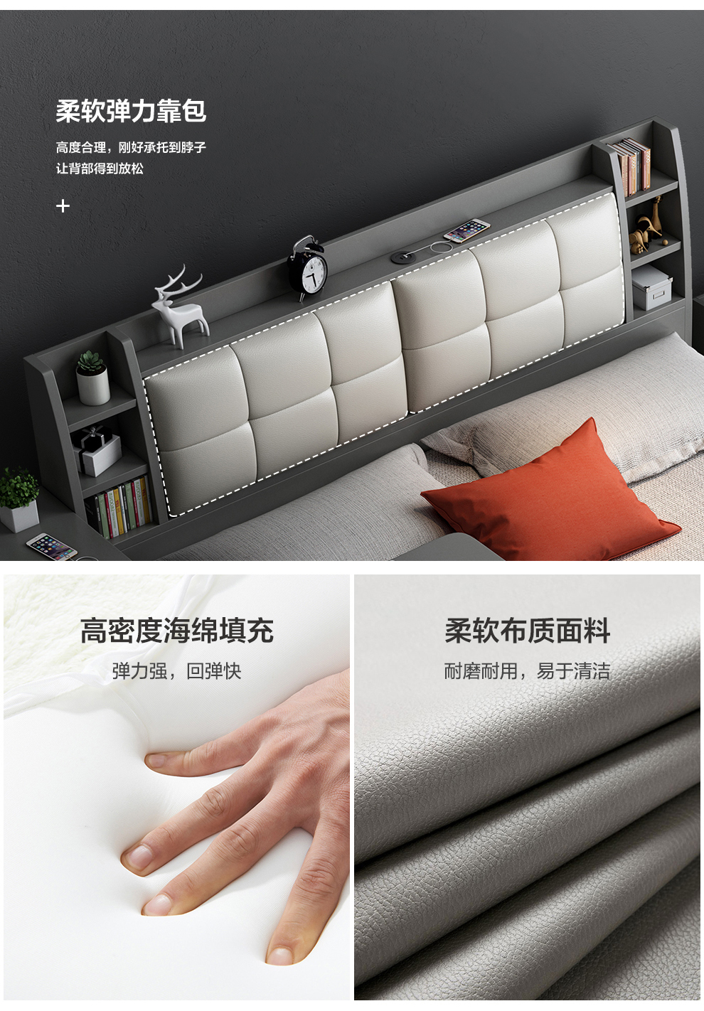 星图 床 儿潼床青少公主粉色床卡通现代轻奢单人床软包床 单床+3星睡感床垫+床头柜*1 1.8m*2.0m豪华加厚加固 框架结构