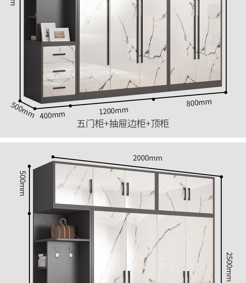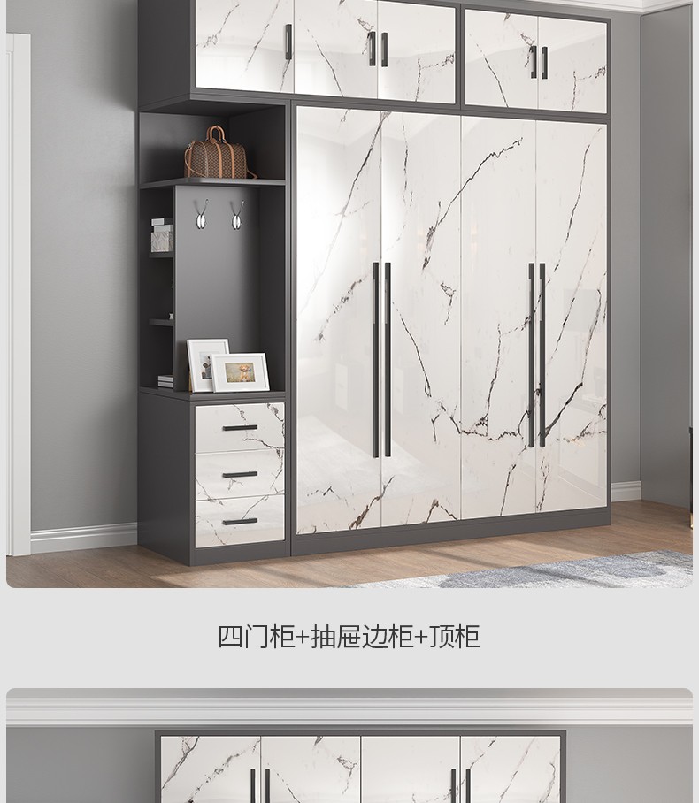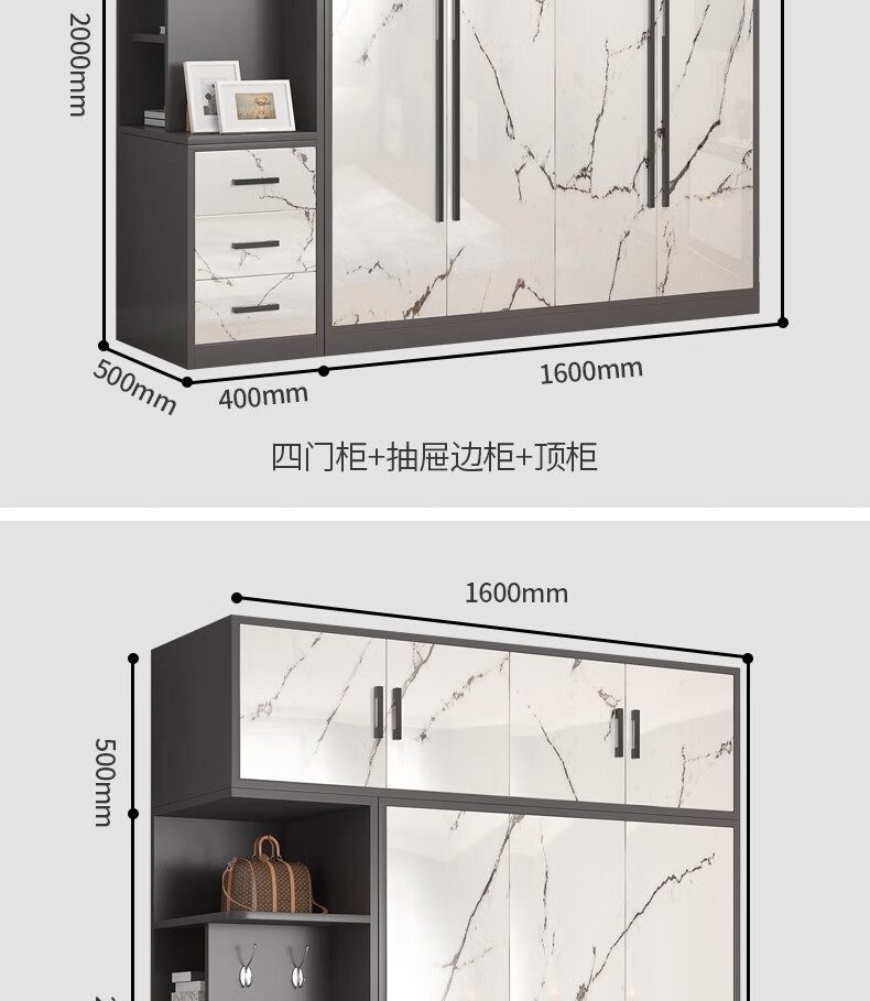 米客米家 鞋柜家用大容量玄关门厅柜储物一体现代简约现代挂衣鞋柜架子 【挂衣区+换鞋凳】天空灰色120cm...