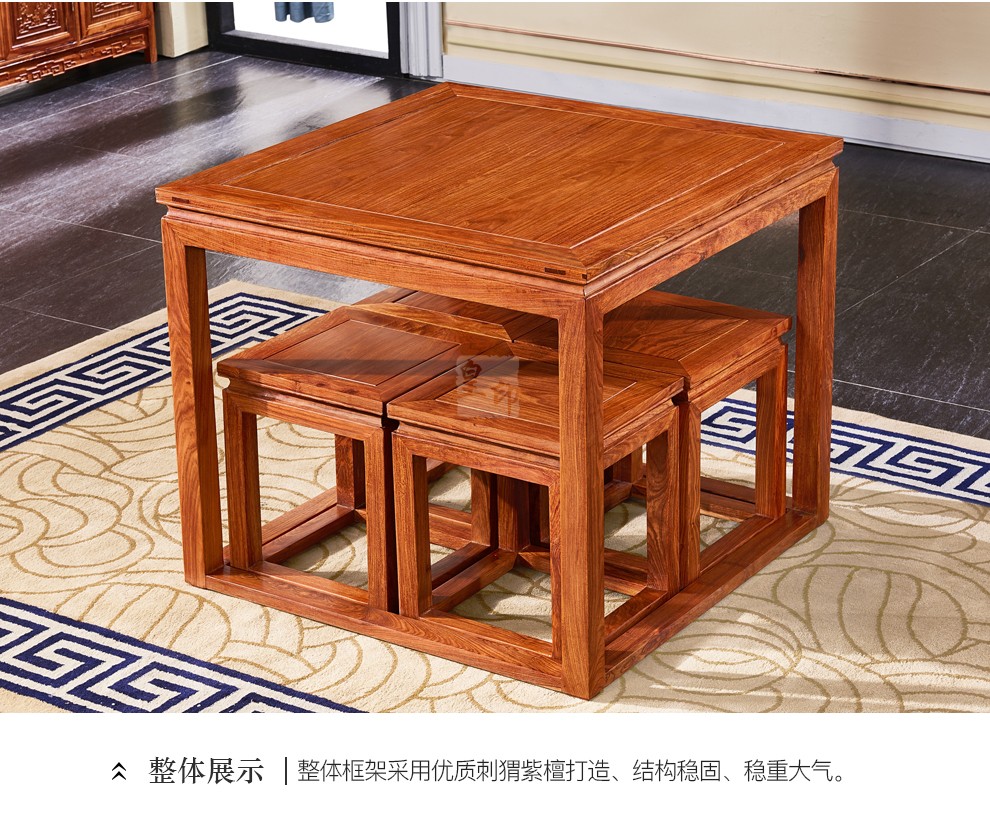 品木客 红木家具非洲花梨(学名:刺猬紫檀)喝茶桌椅组合实木功夫茶几桌 泡茶茶台办公室两用一体桌 1.75M富贵茶桌+1皇宫椅+4圈椅