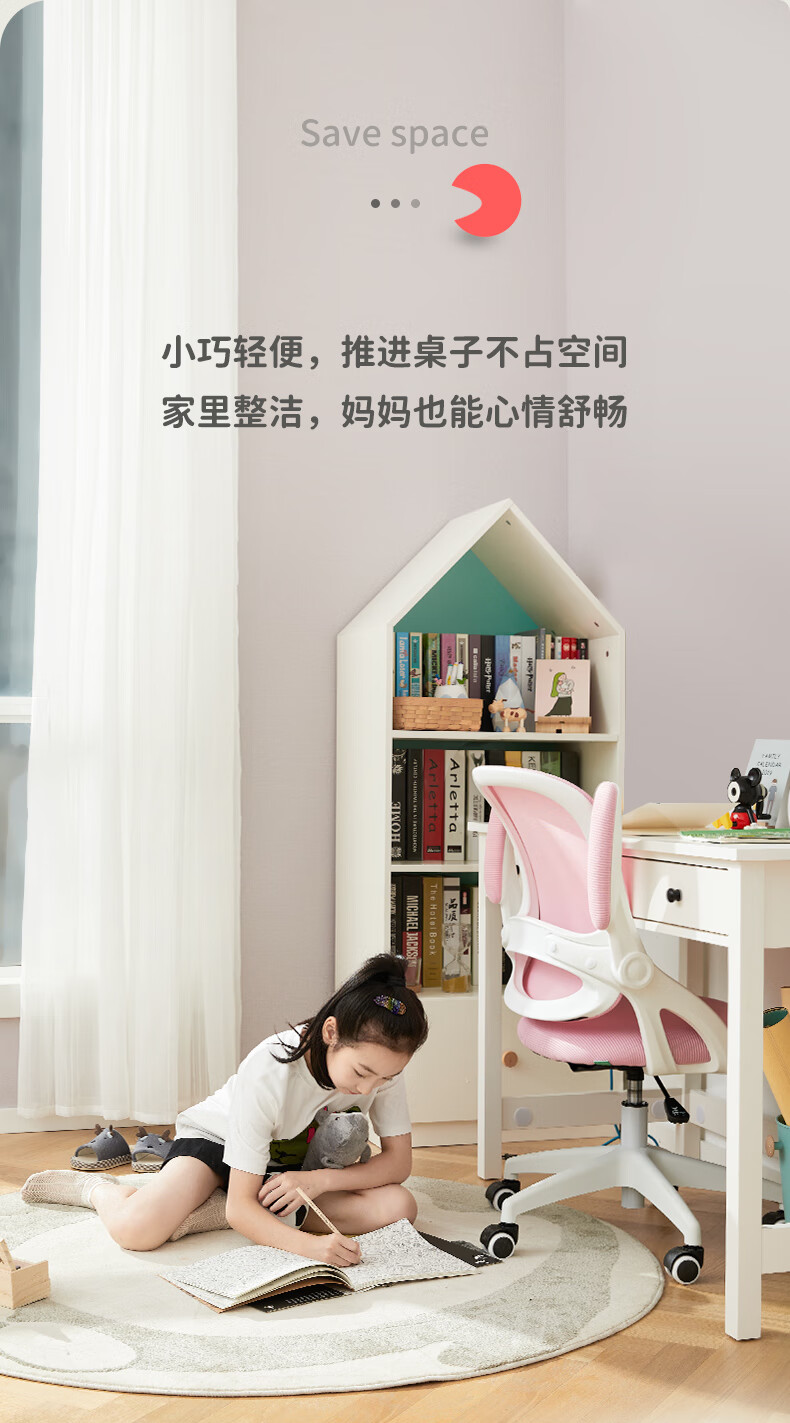 京东精灵空间 京东居家优选 儿童学习桌椅套装 学习桌 儿童书桌 可升降带书架 马卡龙粉 80cm桌椅套装 到手价:999元