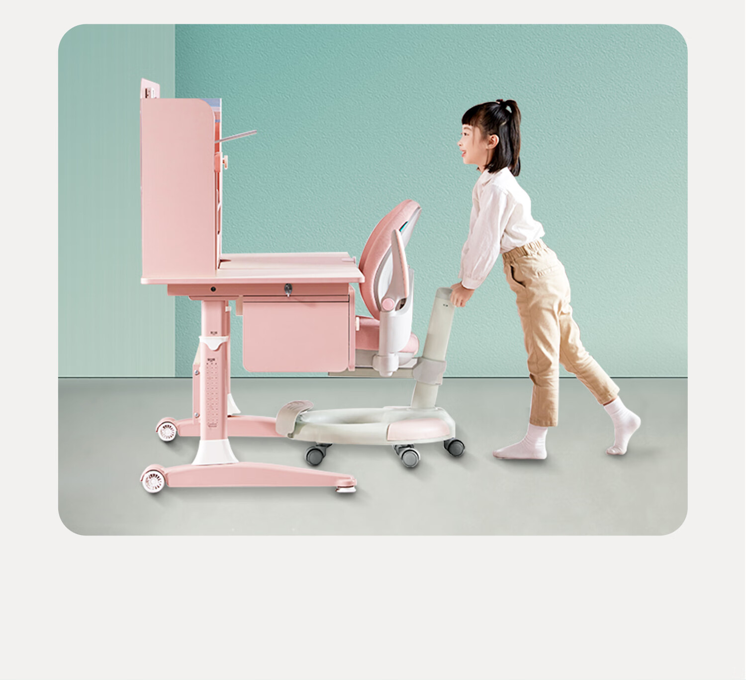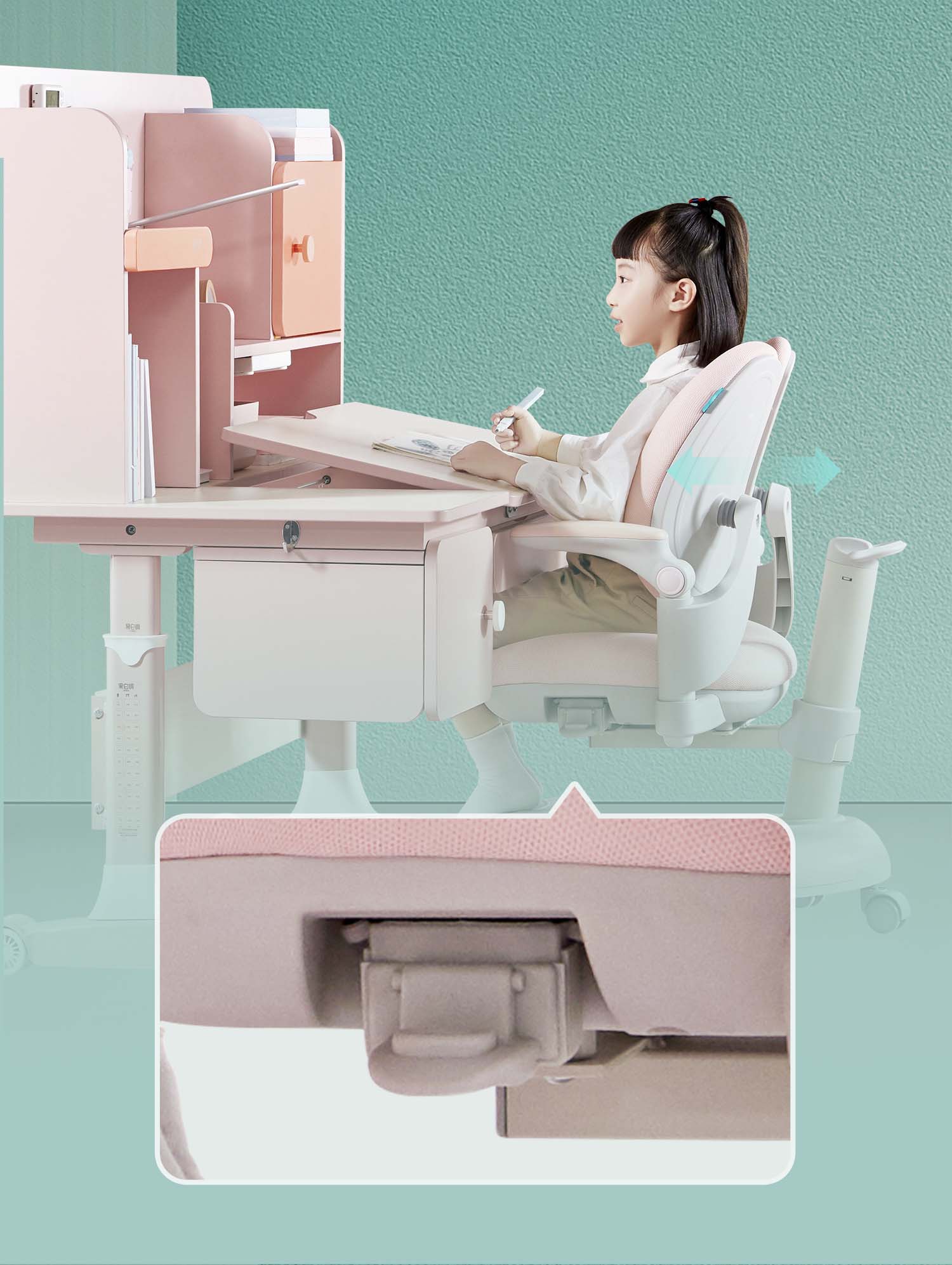 京东精灵空间 京东居家优选 儿童学习桌椅套装 学习桌 儿童书桌 可升降带书架 马卡龙粉 80cm桌椅套装 到手价:999元