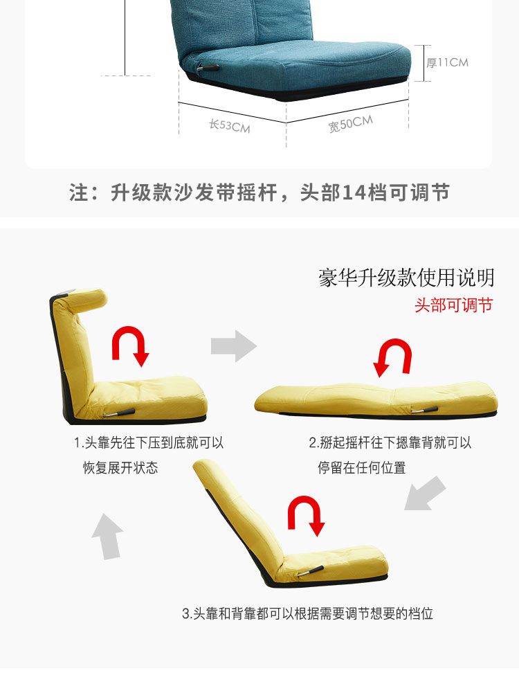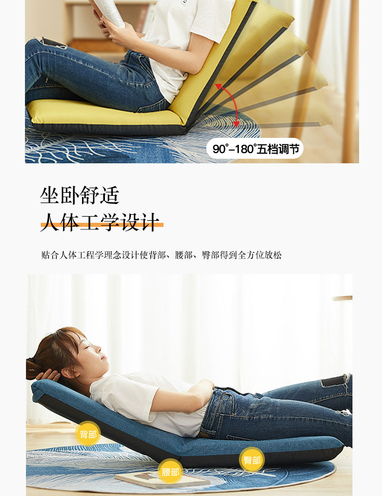 古雷诺斯 懒人椅 懒人沙发单人迷你卧室宿舍可拆洗可折叠椅子 N699-01-三挡可调灰色+搁脚凳...
