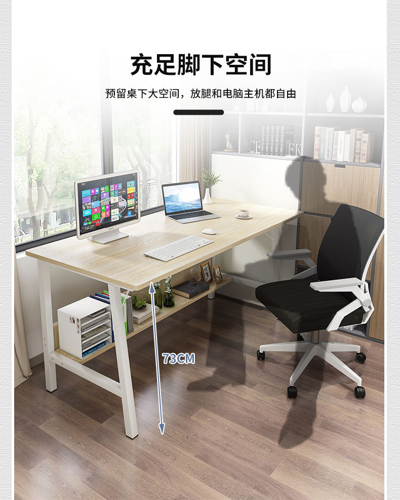 灏森梦电脑桌台式家用书桌书柜组合现代简约带书架写字桌学生学习桌办公室桌子 暖白色140CM...