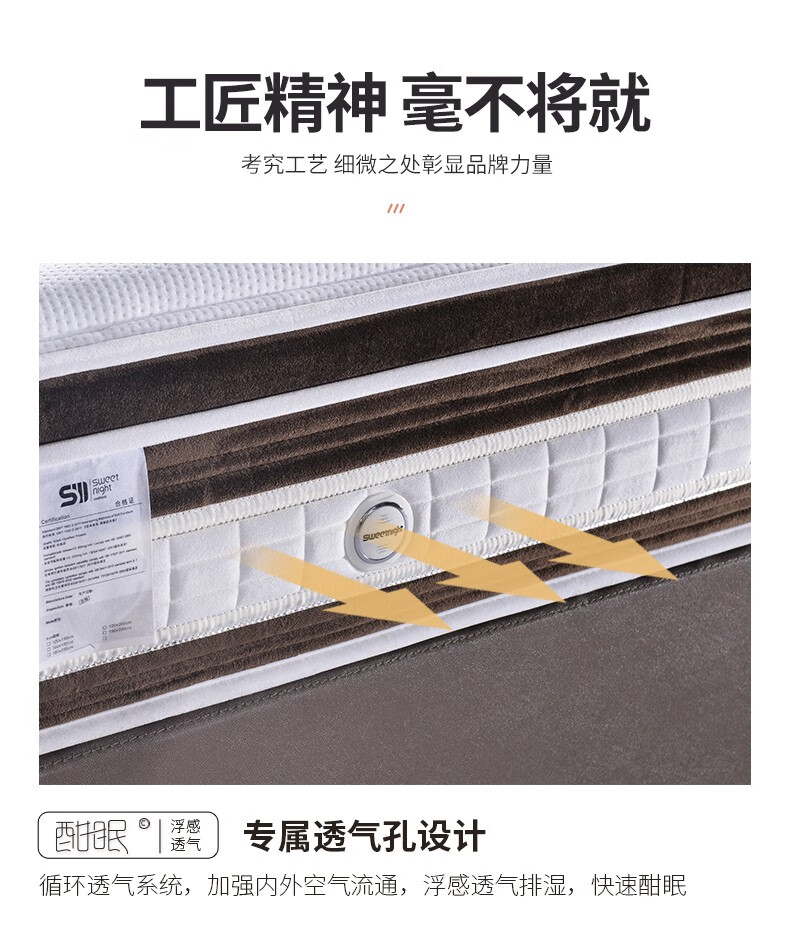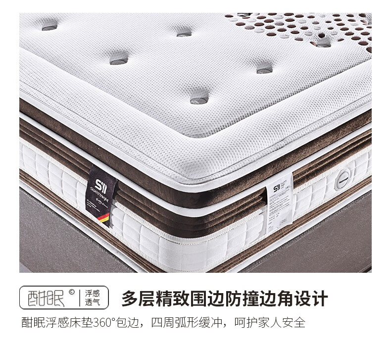 穗宝(SYMBOL)床垫 3D椰棕弹簧床垫 天然椰棕床垫加硬美脊床垫 日内瓦 白色 180*200cm...
