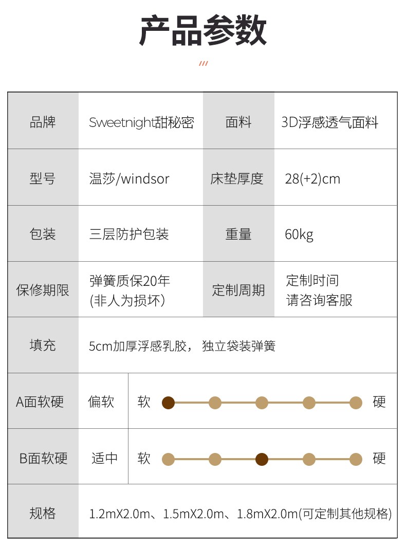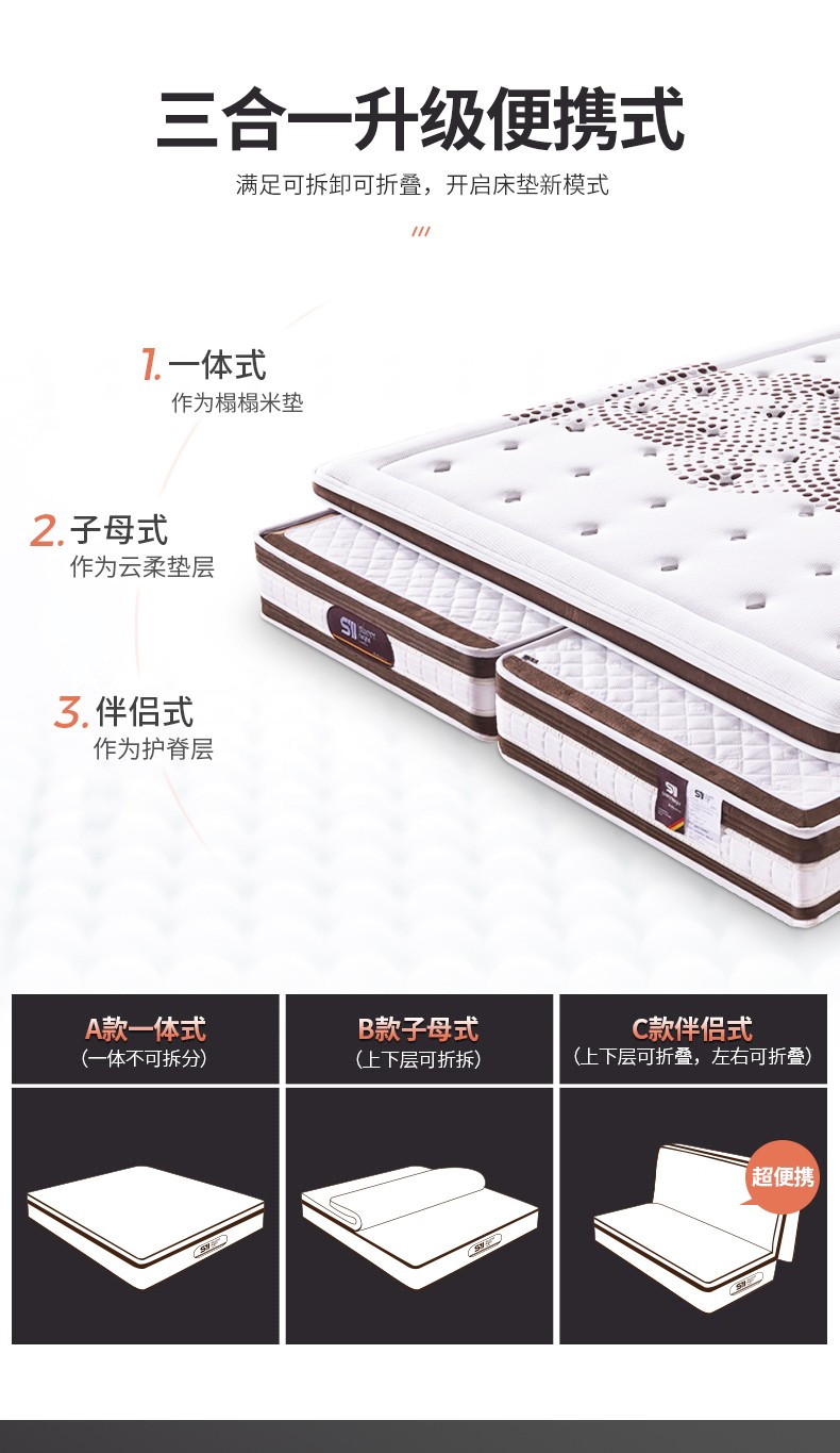穗宝(SYMBOL)床垫 3D椰棕弹簧床垫 天然椰棕床垫加硬美脊床垫 日内瓦 白色 180*200cm