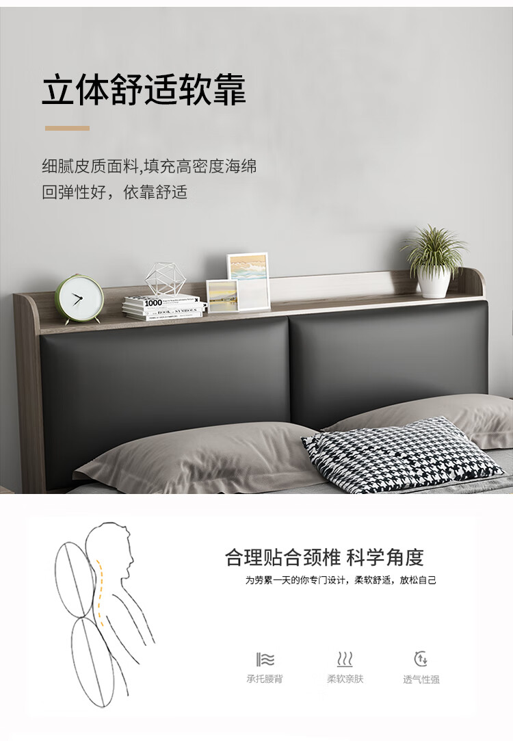 DC头层牛皮床轻奢现代小户型软包床意式极简主卧1.8m婚床双人布艺床俄罗斯松木框架 头层牛皮 单床 1500*2000mm...