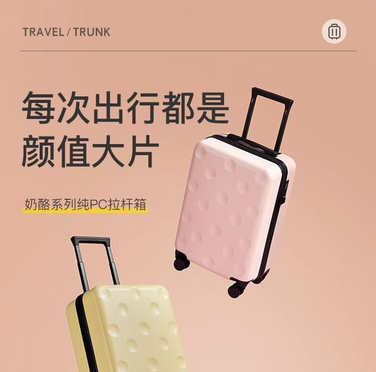 网易严选 奶酪纯PC拉链拉杆箱 行李箱旅行箱 小巧轻便大容量 顺畅拉杆 Q萌外形 圆点奶酪黄 20英寸