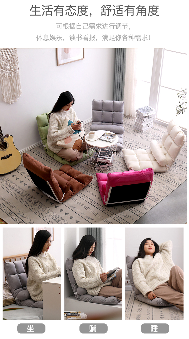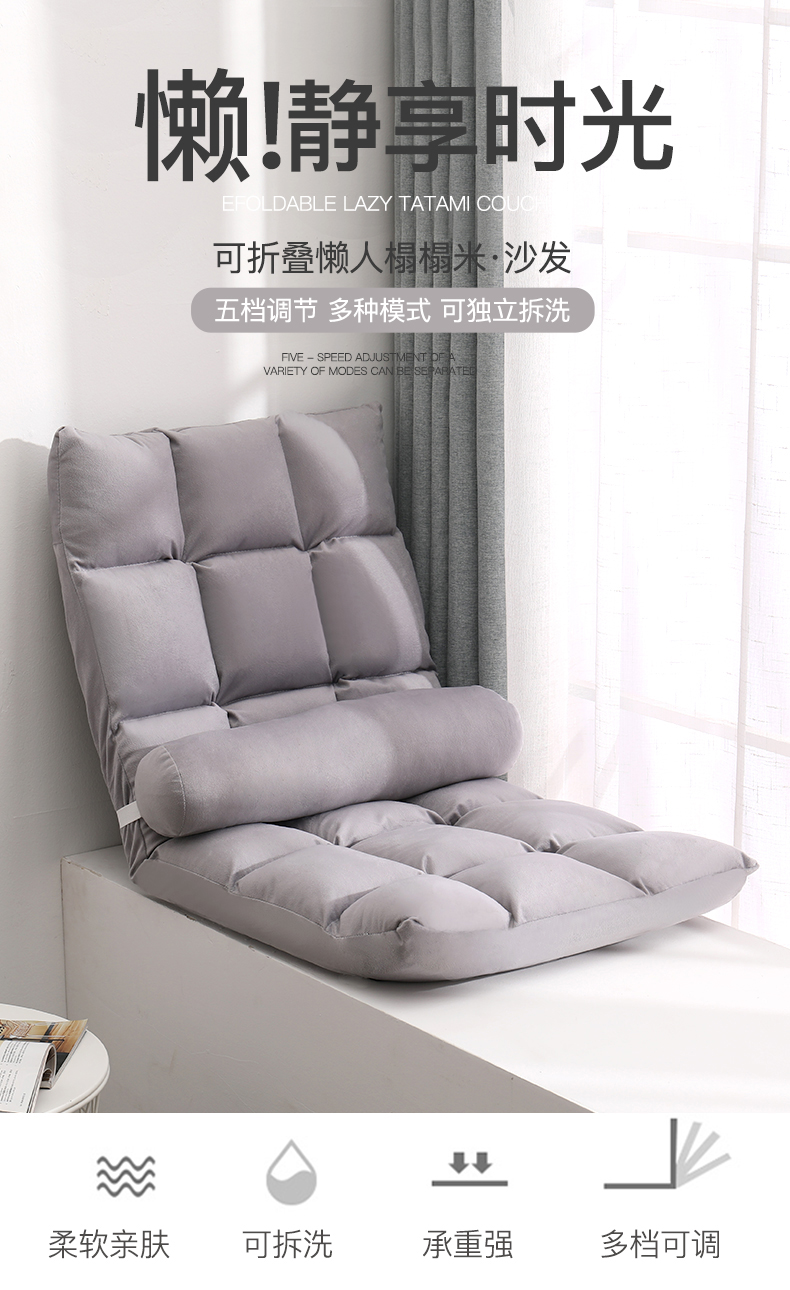 古雷诺斯 懒人椅 懒人沙发单人迷你卧室宿舍可拆洗可折叠椅子 N699-01-三挡可调灰色+搁脚凳...