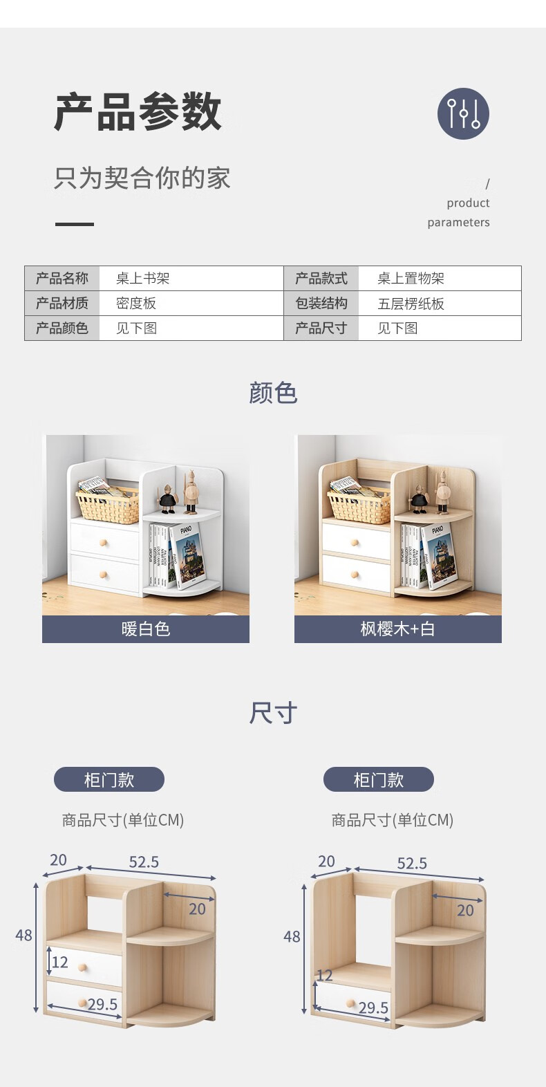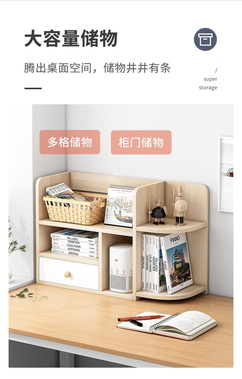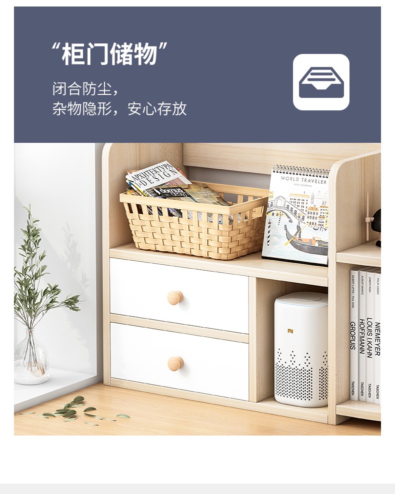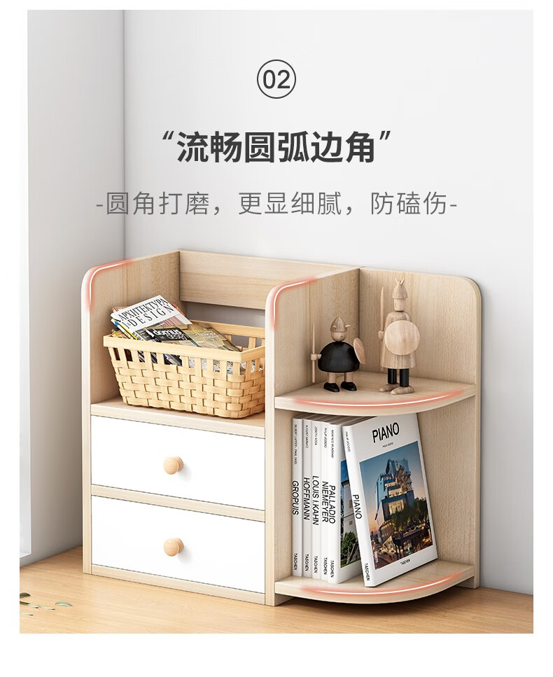 赛杉 置物架落地客厅收纳架子多层储物架展示架房间置物柜卧室网红书架 40X30X150CM橡胶木+暖白【双抽】...