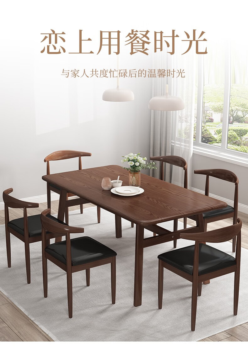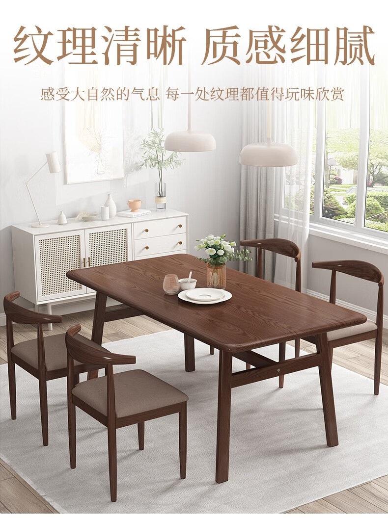 方寸毫厘 餐桌 实木餐桌 美式餐桌 可选餐桌椅组合 餐台吃饭桌子餐厅家具长方形桌子椅子八角餐桌家用 1.6米餐桌+4*双叉实木椅 深胡桃色...