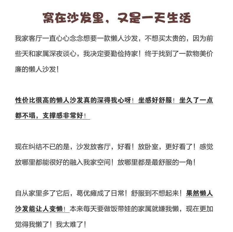 神解读【LUCKYSAC懒人沙发】怎么样?性价比高吗?看看质量评测LUCKYSAC懒人沙发怎么样?神解读【LUCKYSAC懒人沙发】怎么样?性价比高吗?看看质量评测?挺好的,躺着很舒服,各种姿势各种躺,并且腰部也有支撑,整个人...