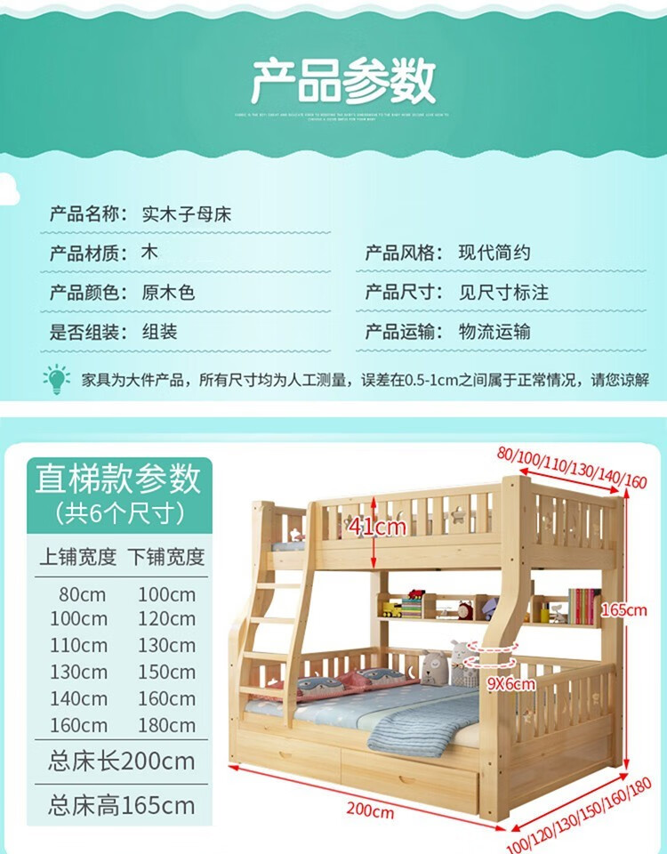 承丘上下床实木高低铺木床亲子床母子床大人宿舍两层上双层床组合储物抽屉书架 原木无漆上下床 800*2000mm承丘上下床实木高低铺木床亲子床母子床大人宿舍两层上双层床组合储物抽屉书架 原木无漆上下床 800*2000mm...