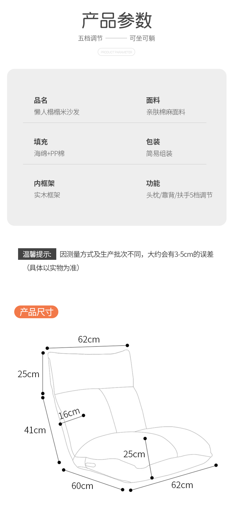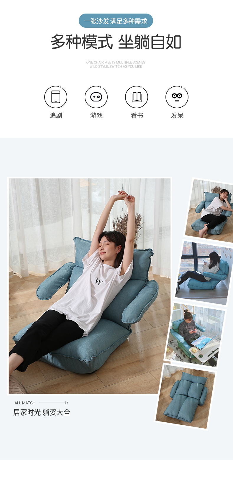 京东古雷诺斯 懒人椅 懒人沙发单人迷你卧室宿舍可拆洗可折叠椅子 N699-01-三挡可调灰色+搁脚凳 到手价:159元